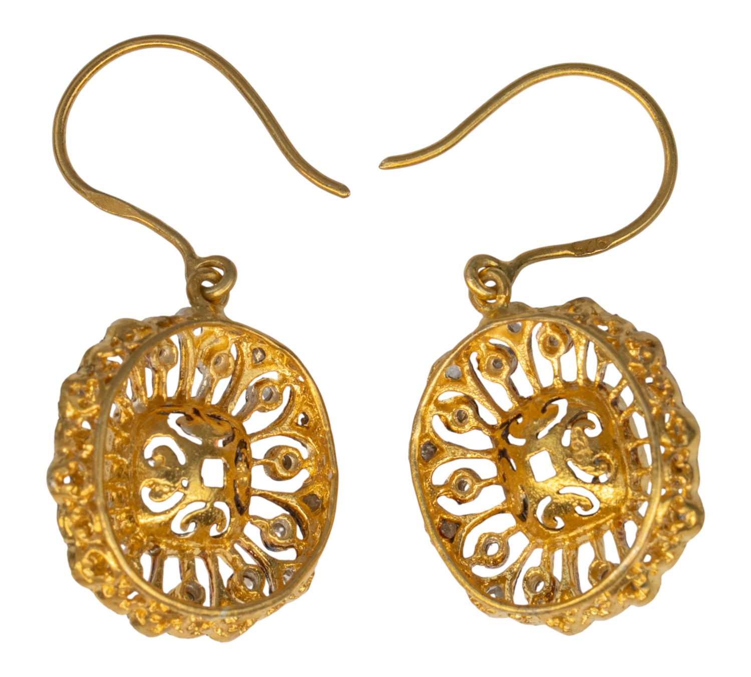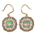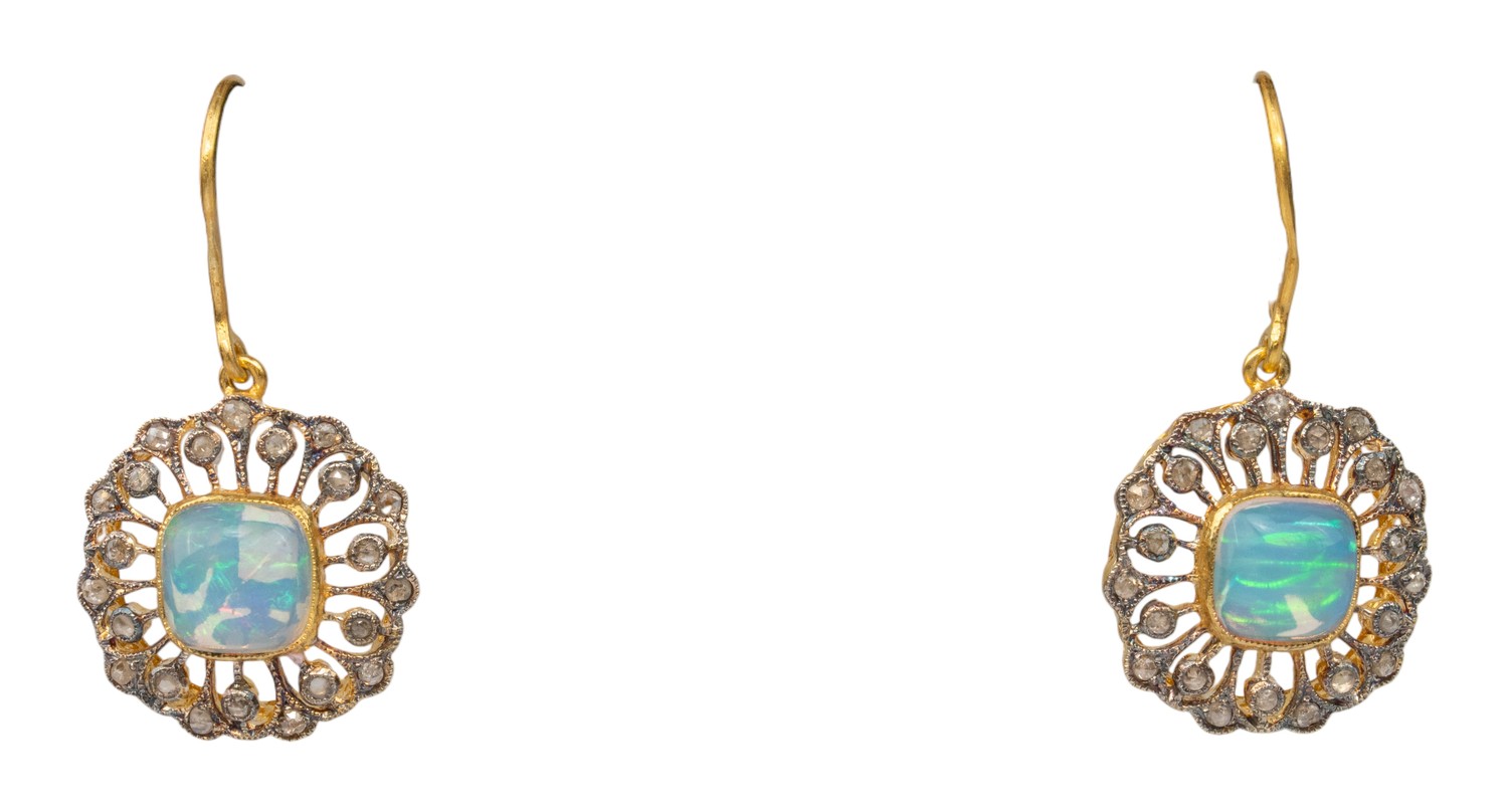 A pair of opal and rose-cut diamond pendant cluster earrings