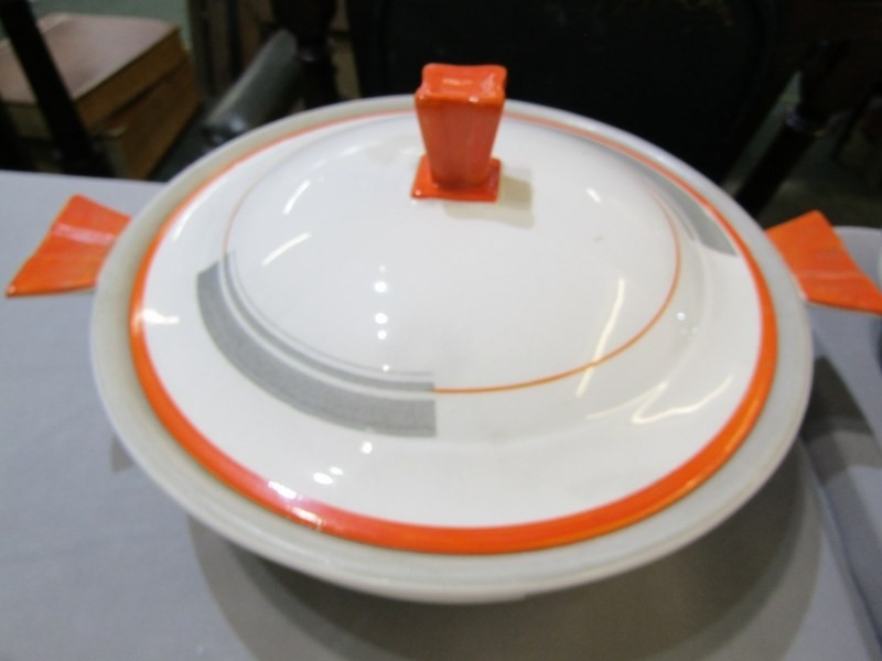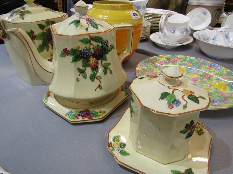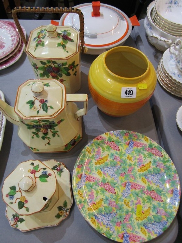 ART DECO CERAMICS, an art deco Shelley tureen together with a Shelley pot, Royal Winton chintz plate and a Fielding's tea set (6 pieces)