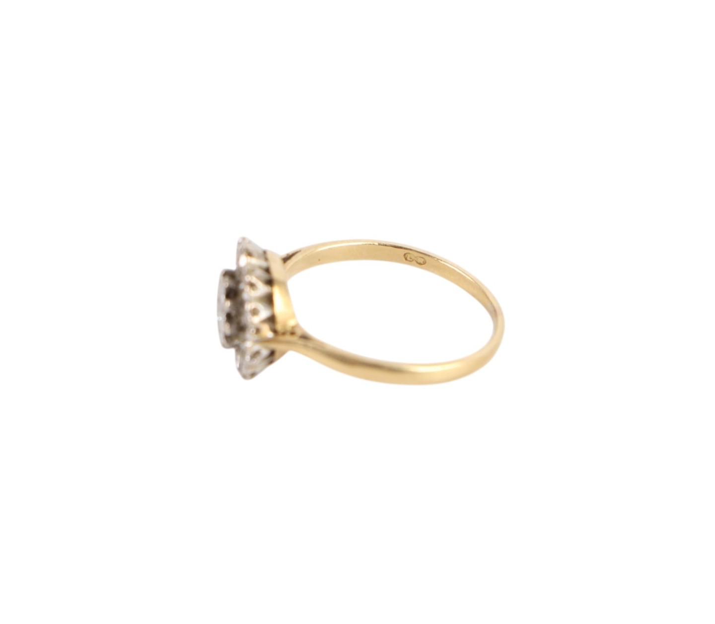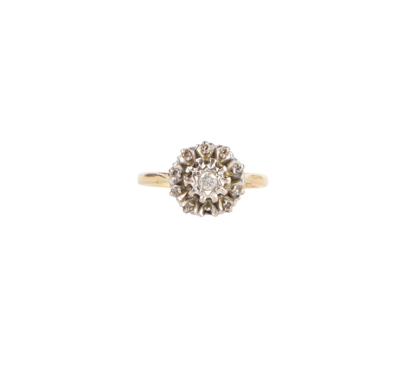 An 18ct gold diamond cluster ring, approx UK size K, 2.6g.
