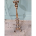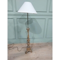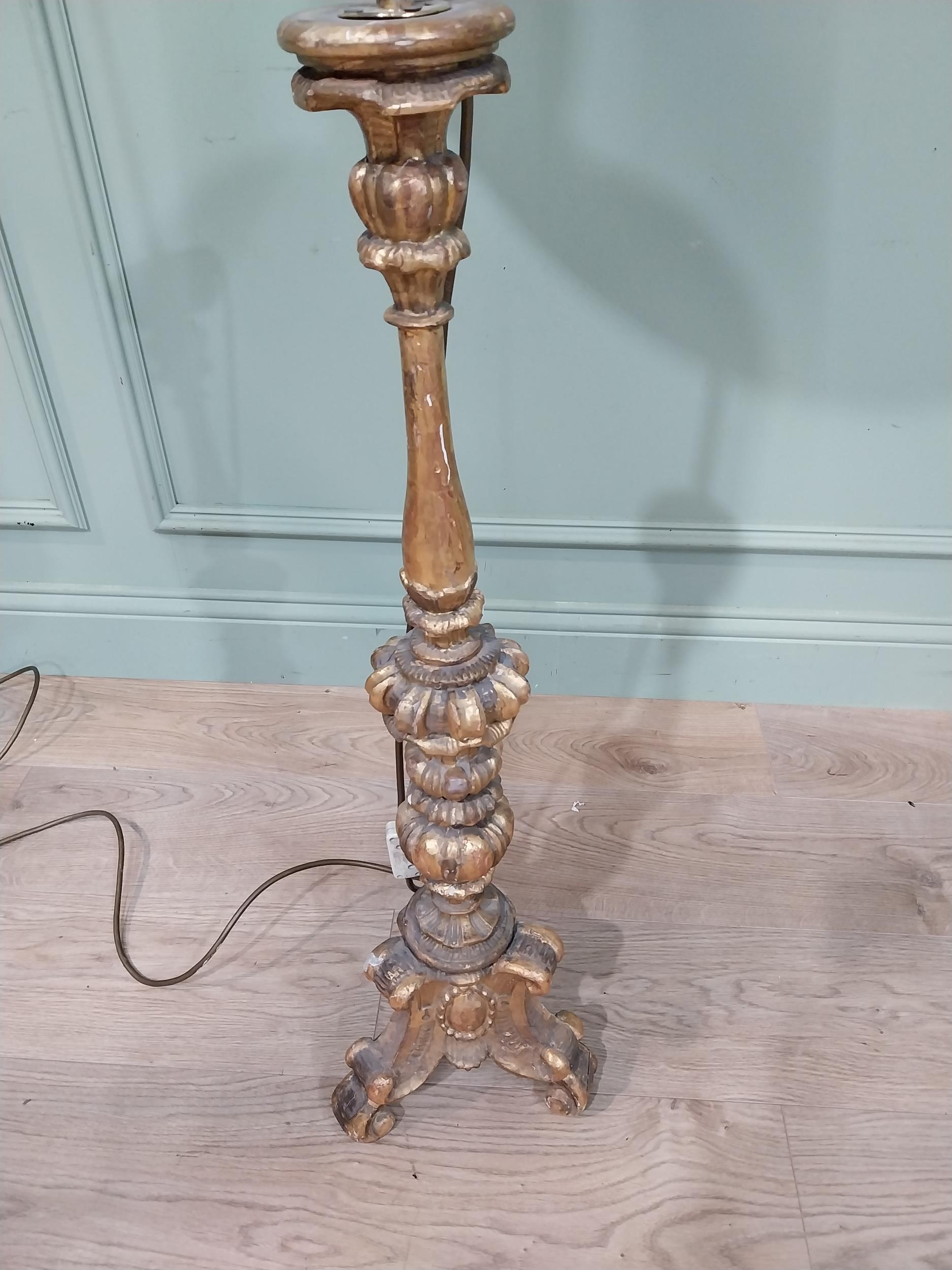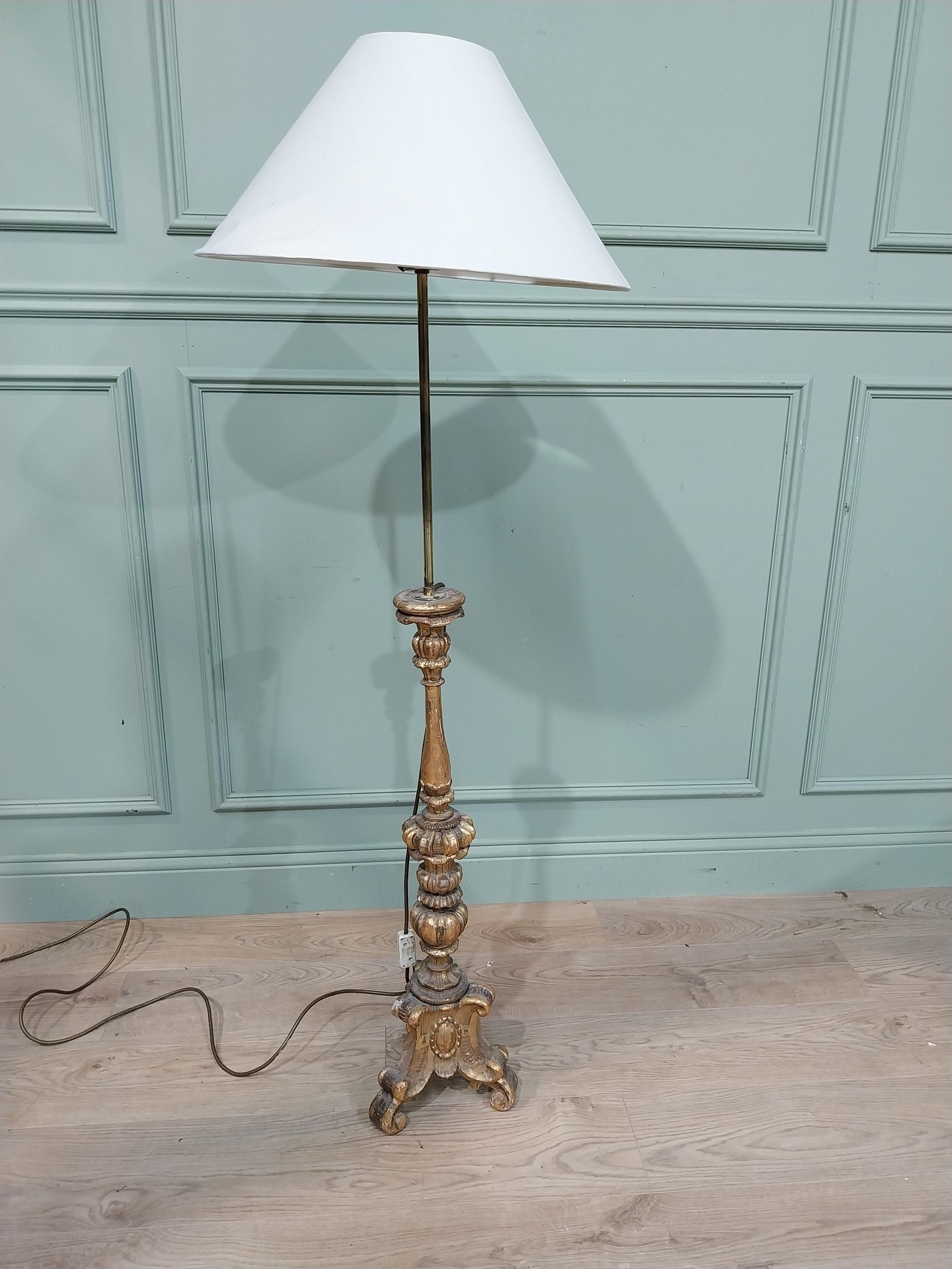 18th C. giltwood candlestick converted to standard lamp with cloth shade. {145 cm H x 51 cm Dia.}.