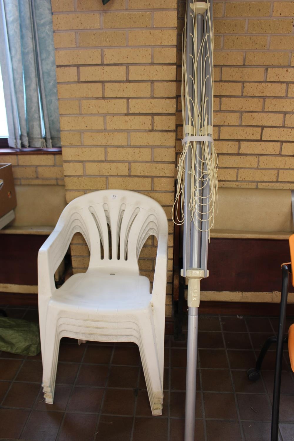 4 PLASTIC PATIO CHAIRS & A ROTARY AIRER