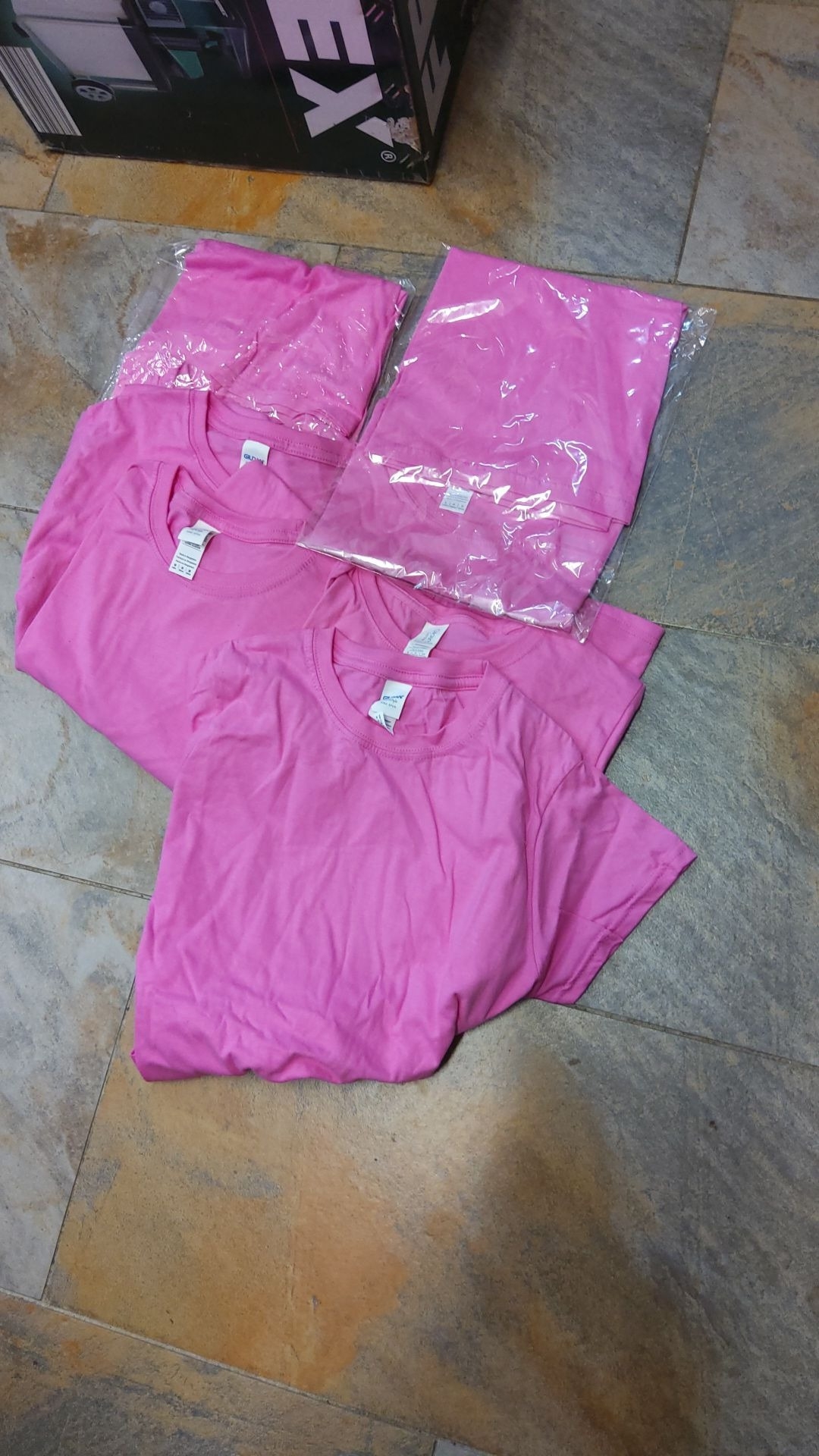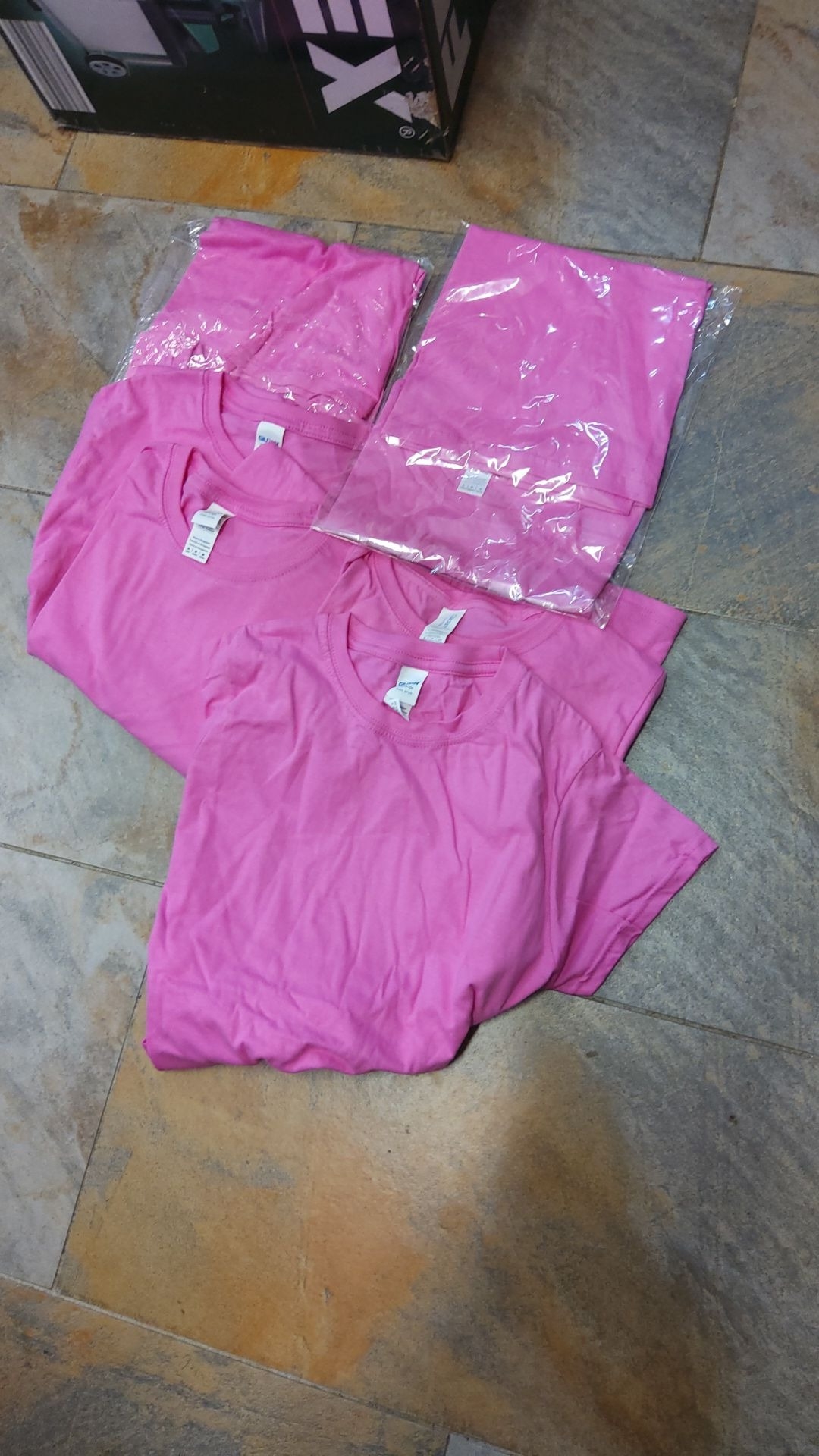 Set of six Gildan Heavy Cotton short-sleeve crew-neck T-shirts in vivid pink,various sizes