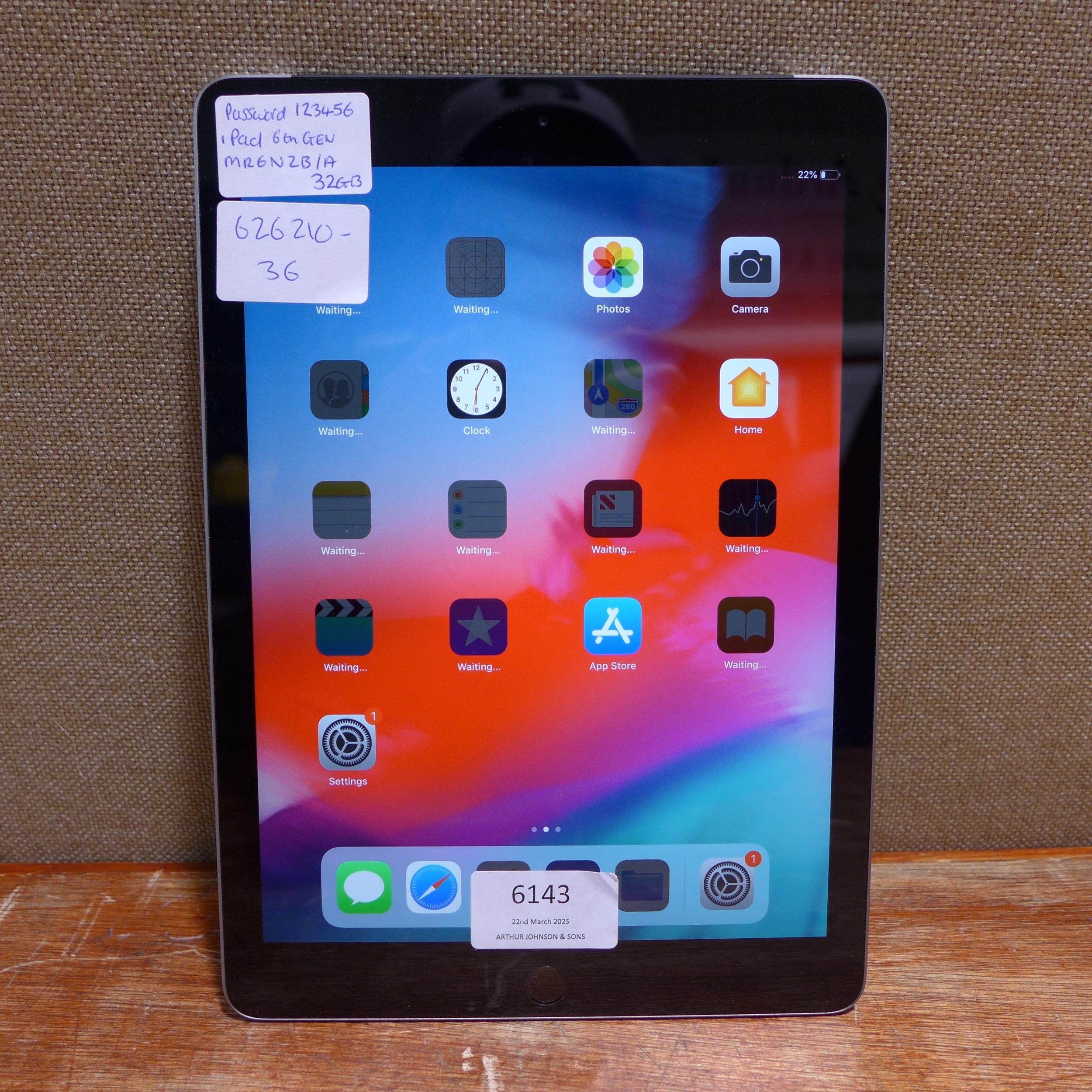 Apple ipad 6th Generation 32gb (model: MR6N2B/A) *This lot ...