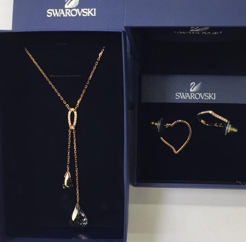 Swarovski 'Lunar Crystal Blush' necklace & 'Now Heart' earrings. Ref. no.s 1054612 & 1080285.