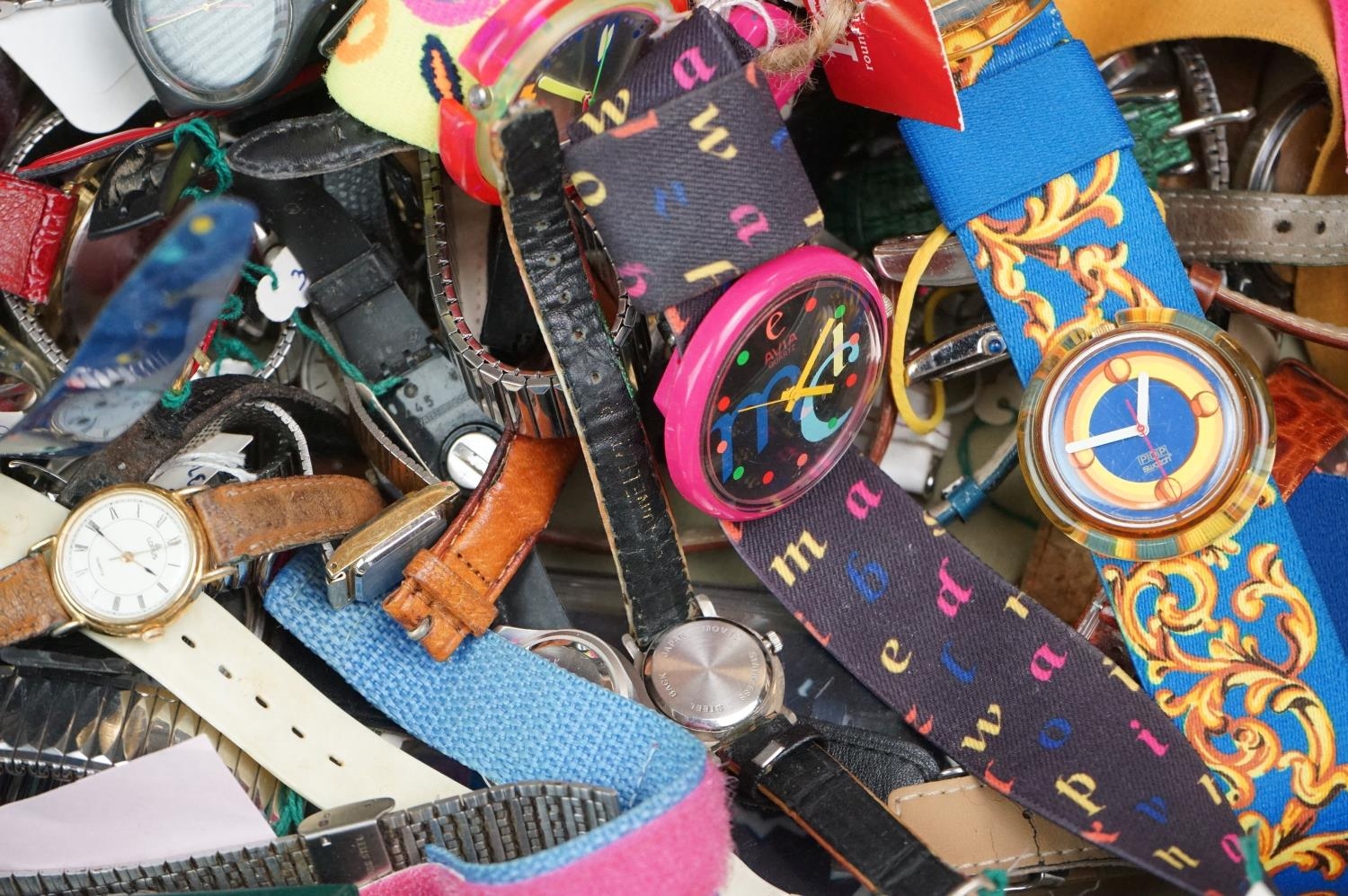 A large collection of mainly quartz watches to include advertising examples.