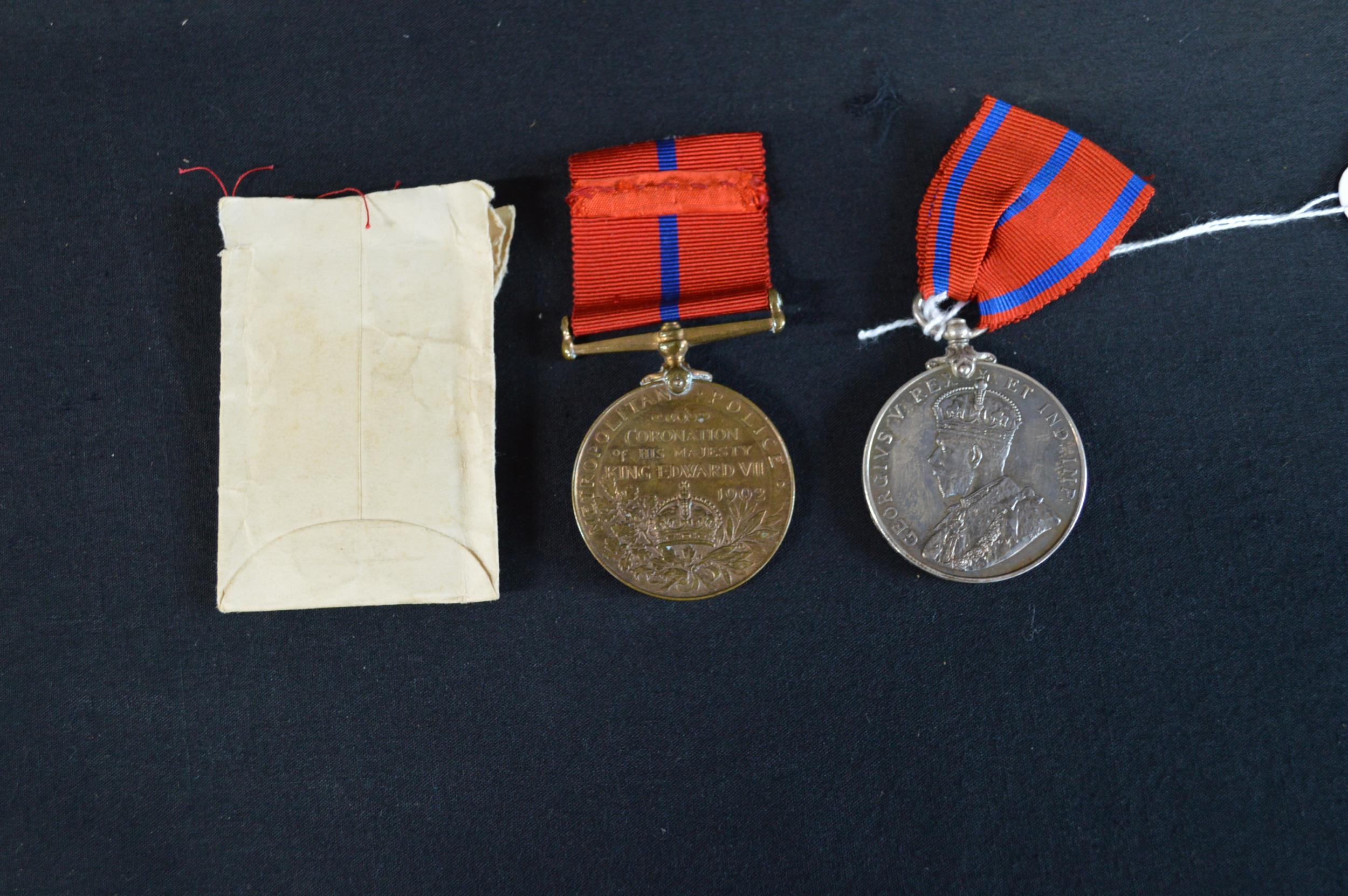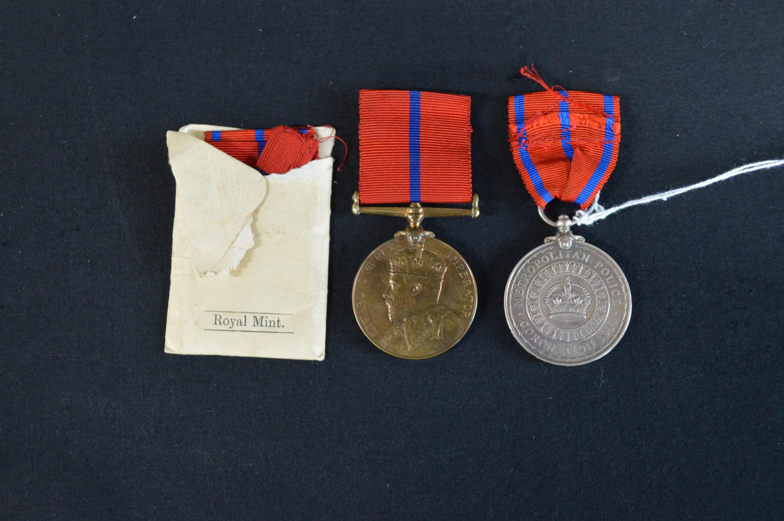 Silver Metropolitan Police Coronation 1911 Medal together with a bronze Metropolitan Police Coronation 1902 medal, both engraved on edge PC A Bailey