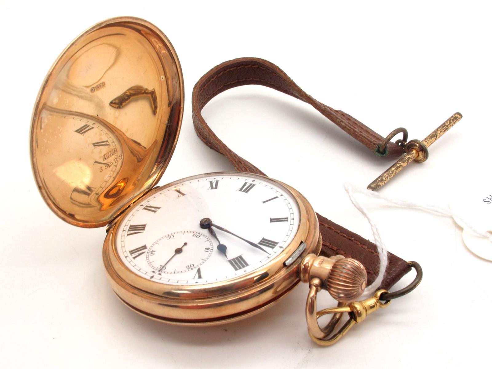 A 9ct Gold Cased Hunter Pocketwatch, the white dial with black Roman numerals and seconds subsidiary dial, the movement numbered "252804", with plain dust cover, within monogrammed case, Birmingham 1911,