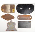 Wagon plates cast iron inc; London & North Eastern Railway Darlington D plate 289701; Standard Railway and Wagon; WH Davis; RY Pickering; Gross Weight 25 tons, and a carriage seating capacity plate. Most repainted. 6 items. Shipping plan - C.