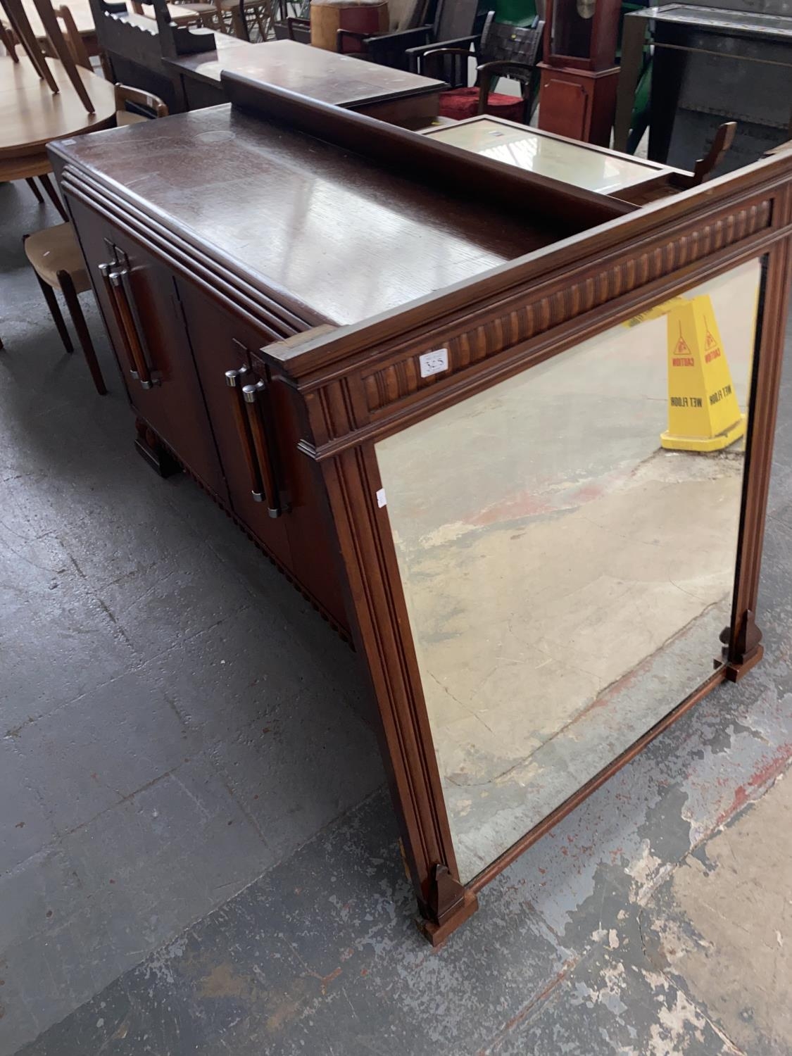 A Art Deco oak sideboard and a mahogany pier/overmantle mirror