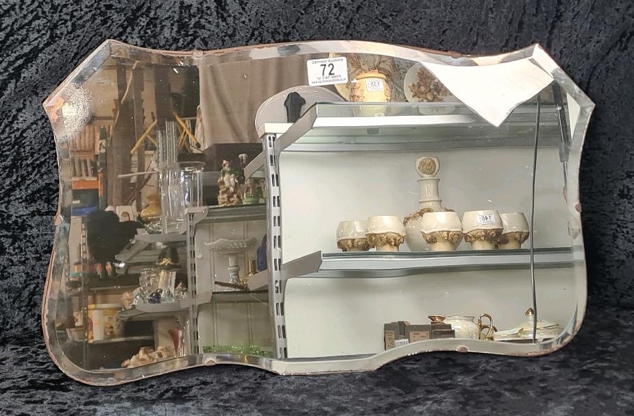 Vintage Art Deco style frameless bevel-edge wall mirror - needs replacement fixings. Approx H33 x W56cm.