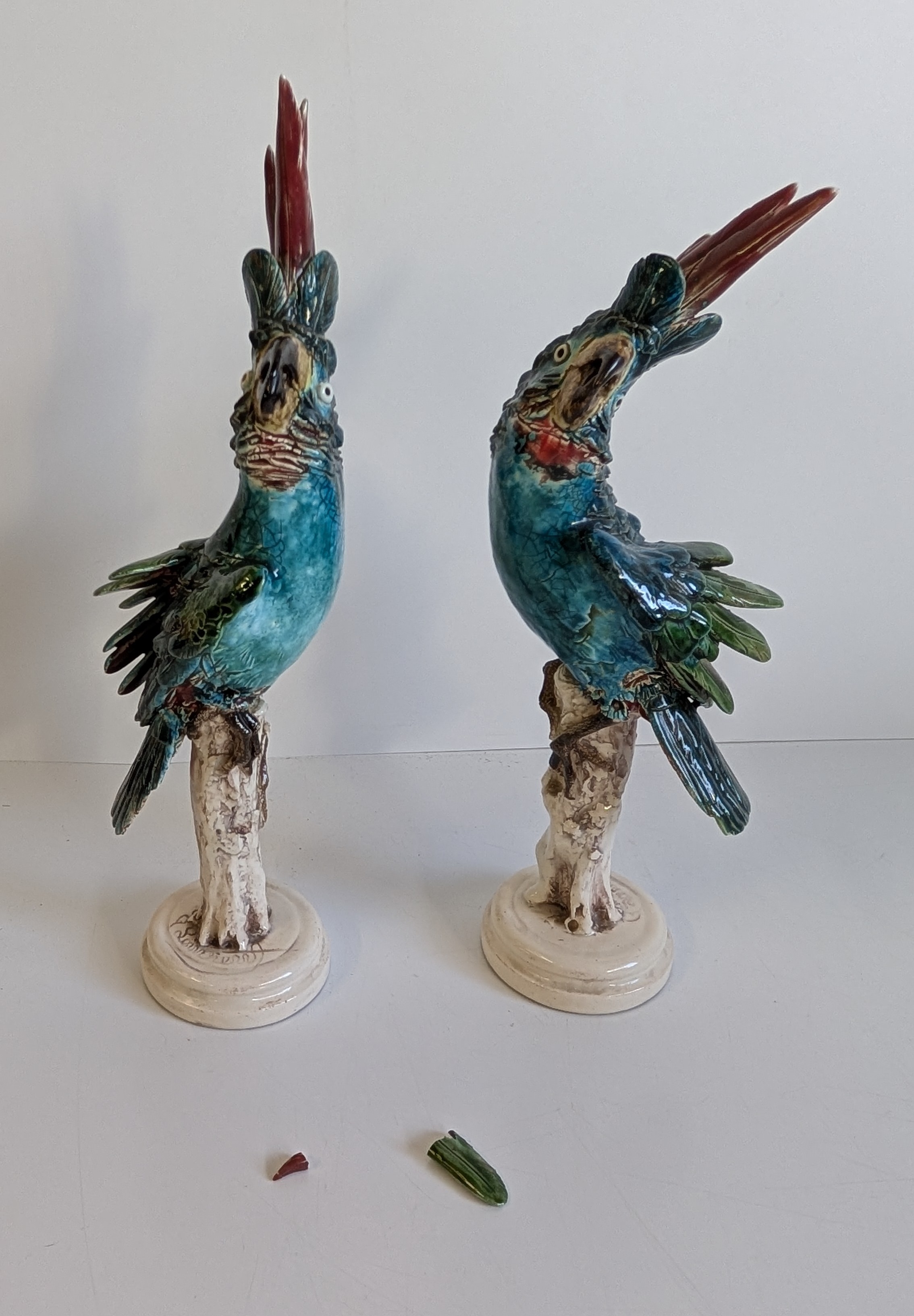 A Pair of Continental Majolica Parrots by Cipriano Piccolpasso, Cantagalli, Florence, circa 1900