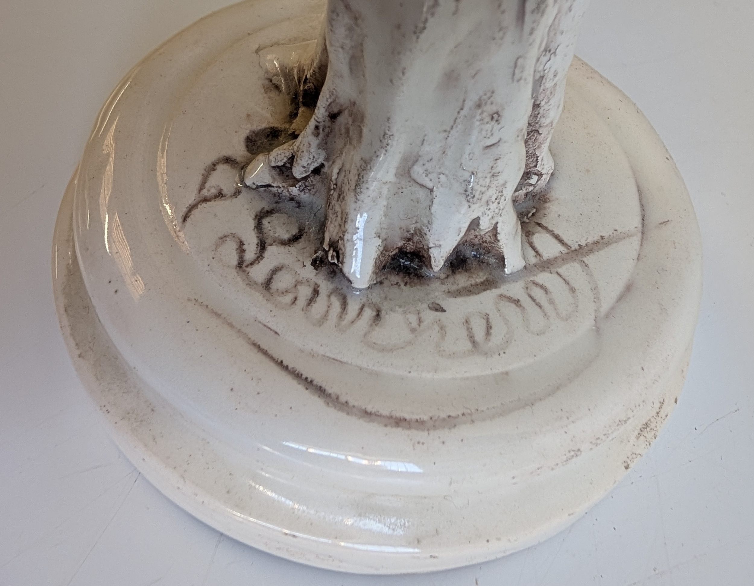 A striking pair of large Italian majolica parrots, each modelled perched on a tree stump, with boldly coloured plumage in turquoise, green, and deep red glazes. Both signed to the bases “Cantagalli”, attributed to the celebrated Florentine pottery workshop founded by Ulisse Cantagalli, known for its revival of Renaissance maiolica and exuberant naturalistic style.