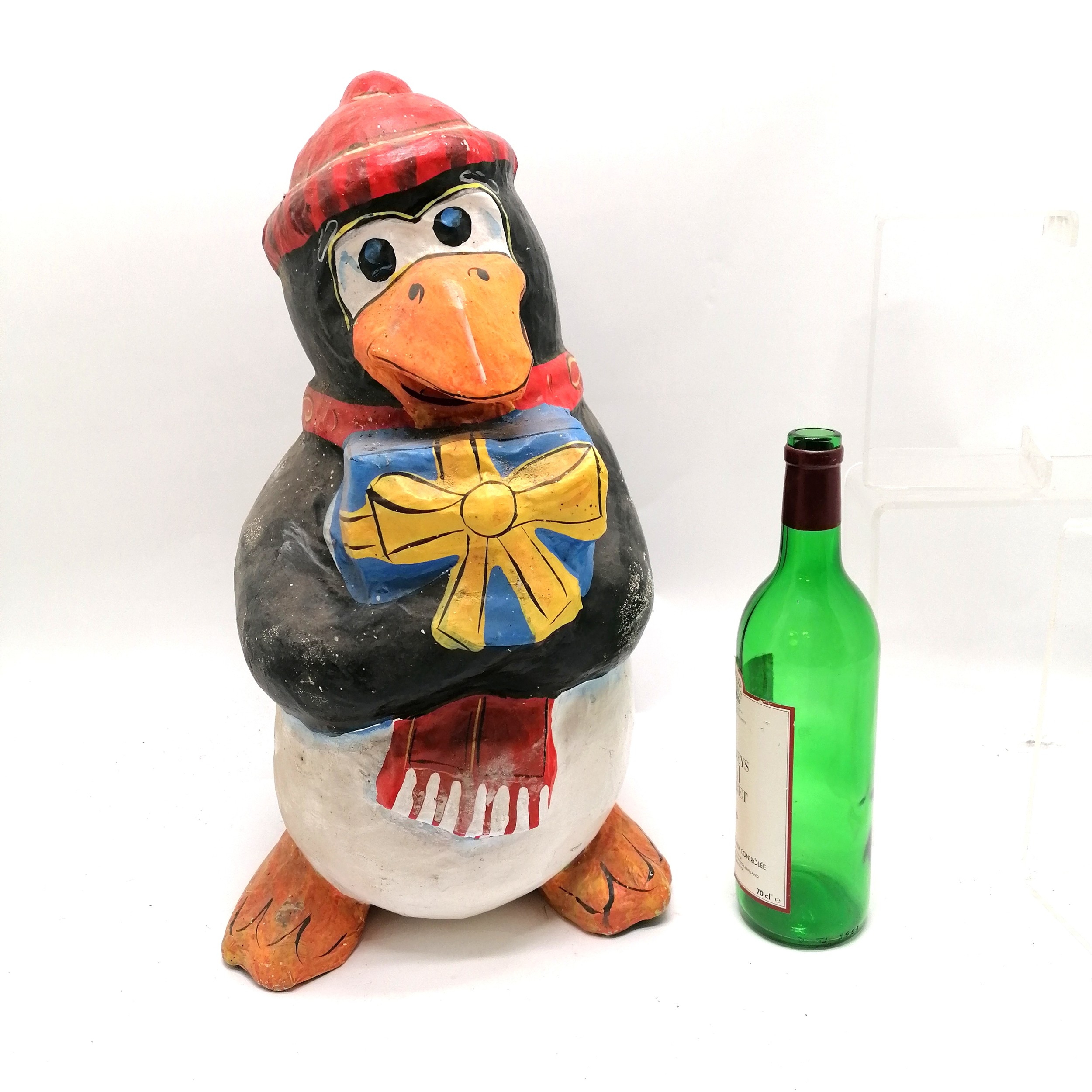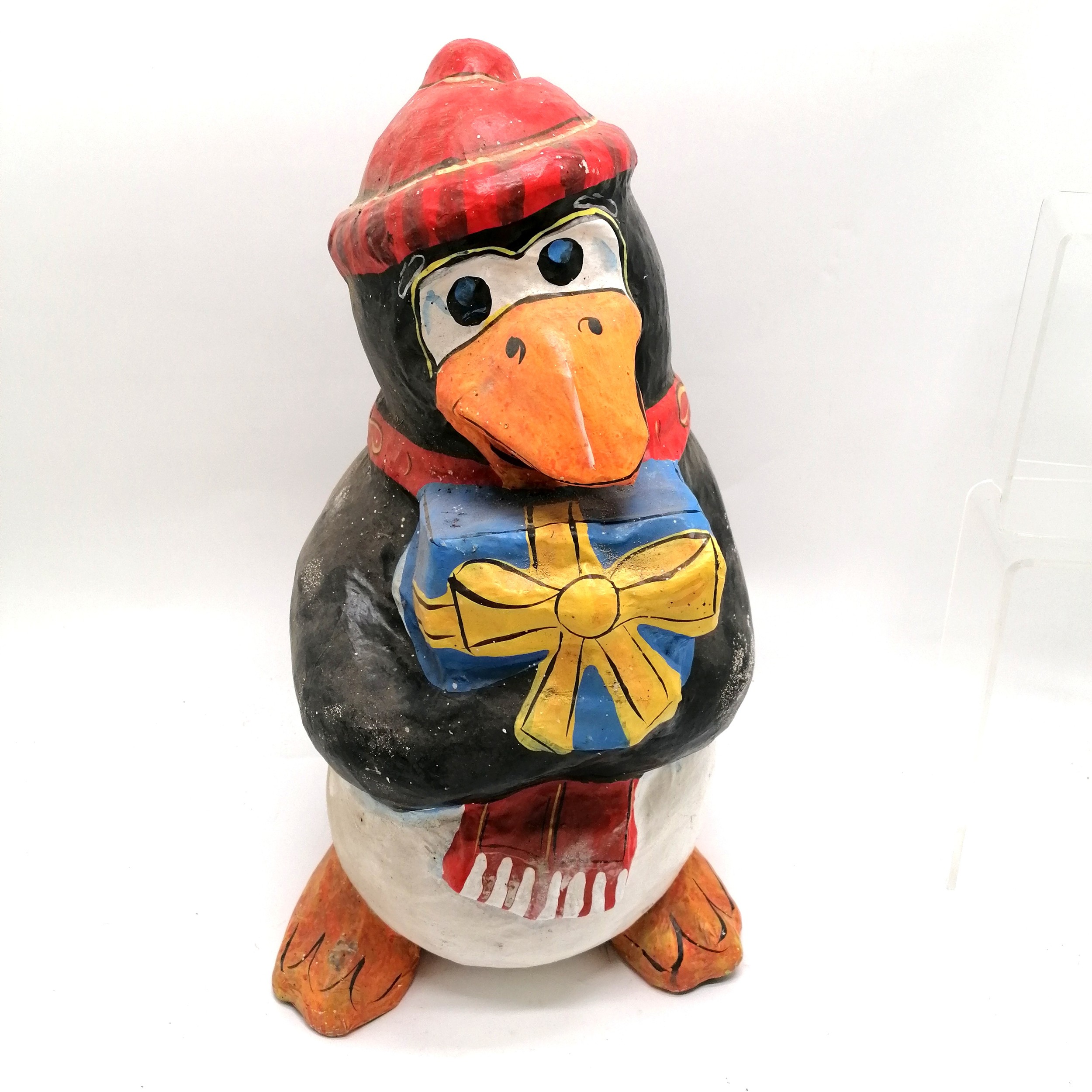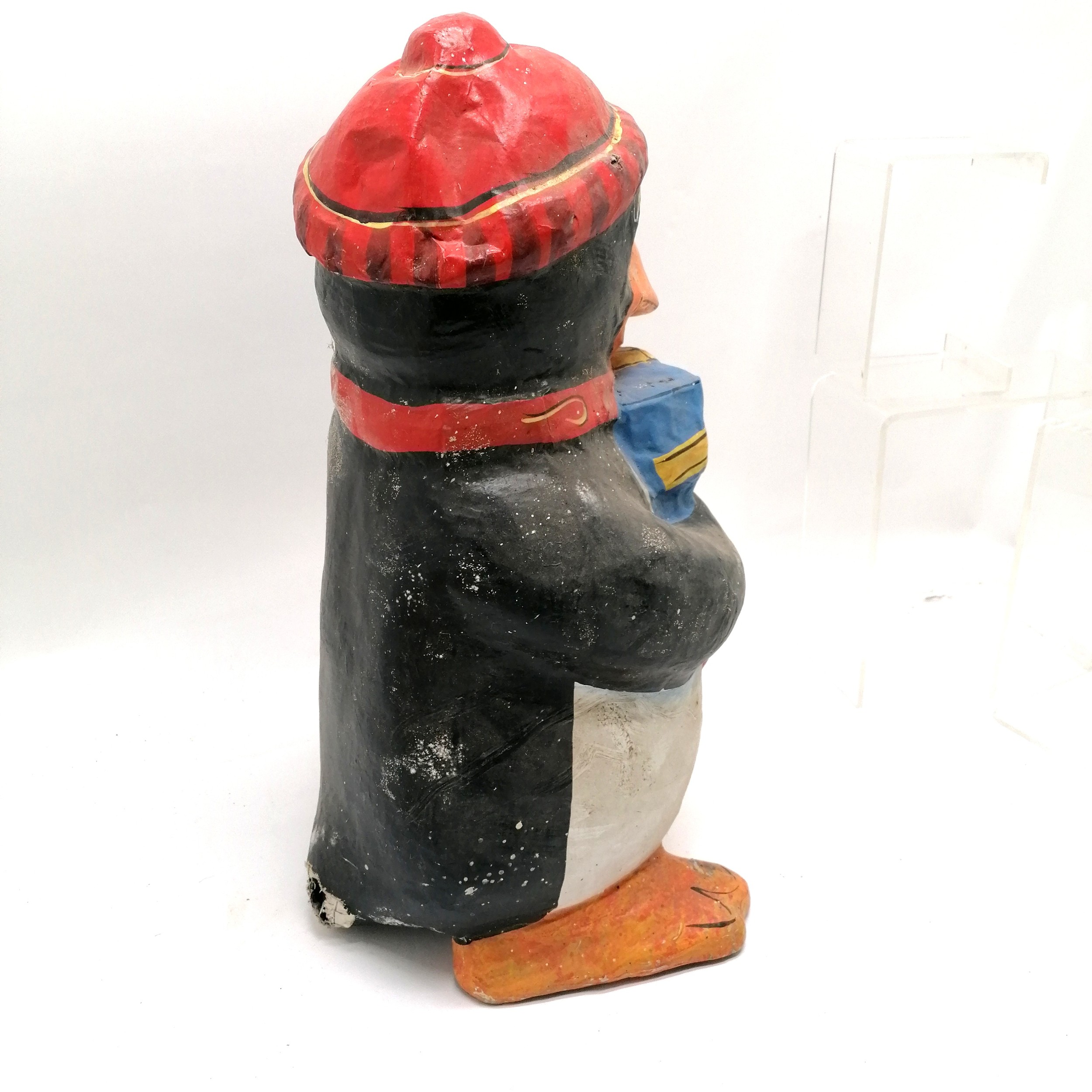 Vintage papier mache Christmas penguin 47cm high - has damage to the tail