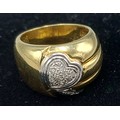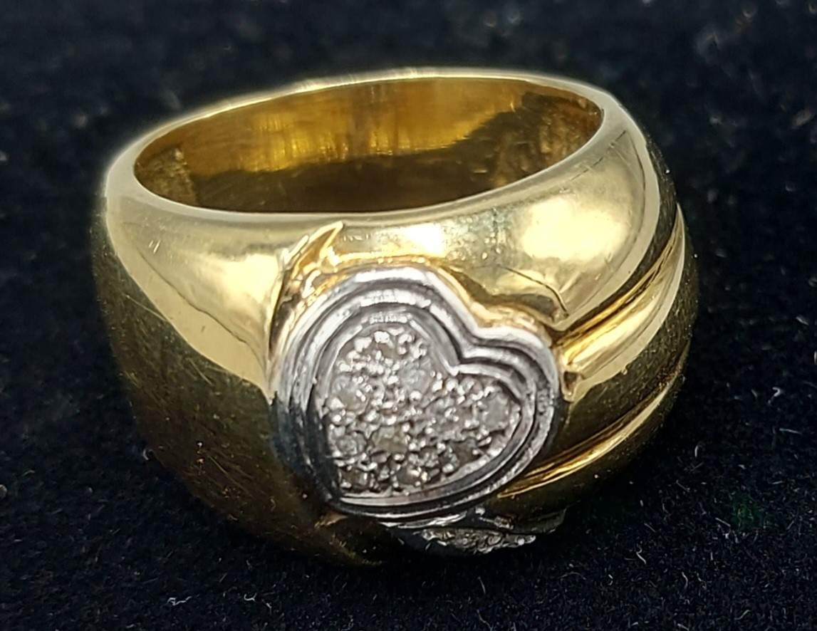 A tested gold ring set with diamonds in the shape of a heart, ring size Q, 14g