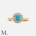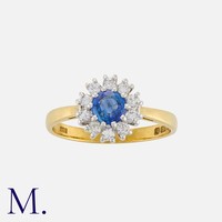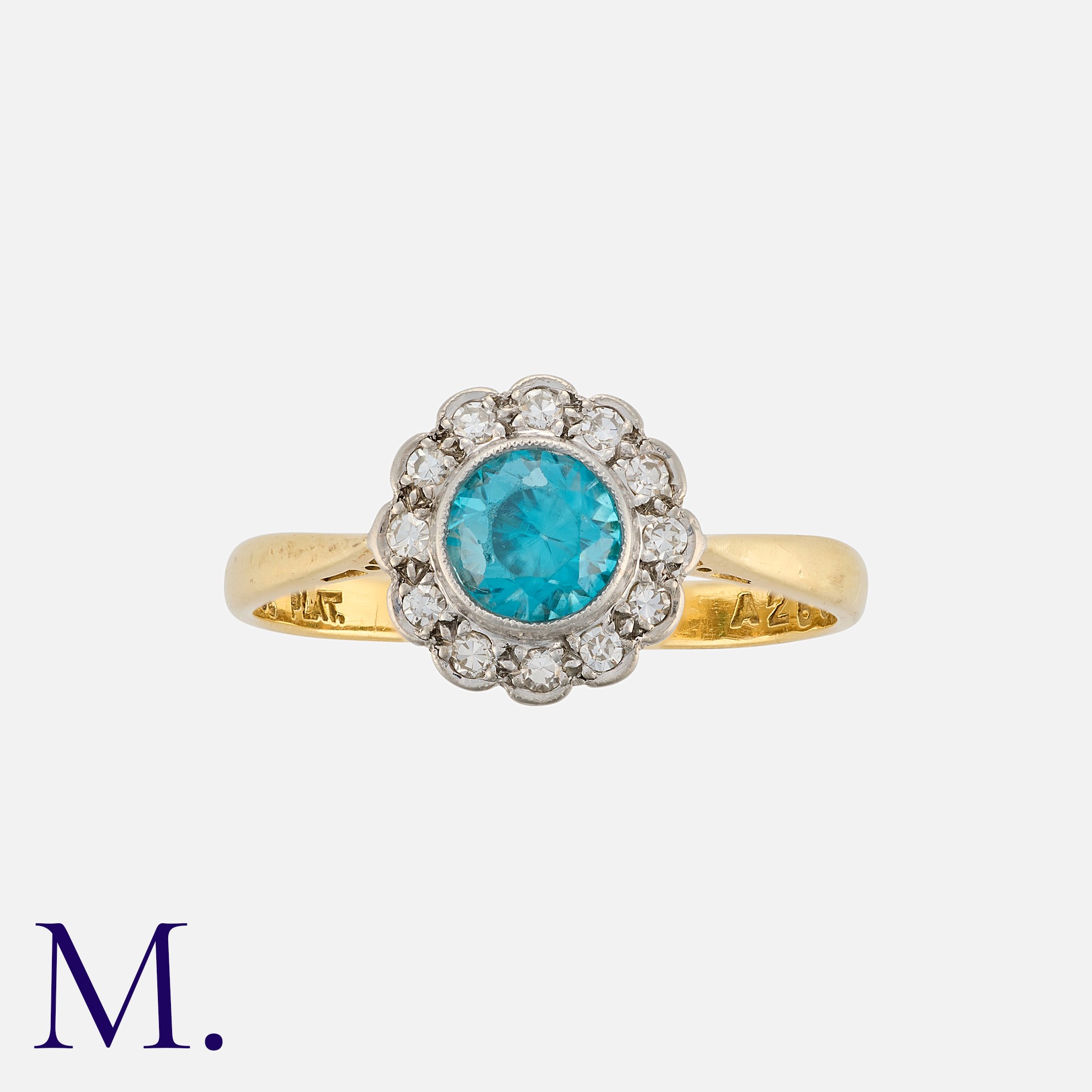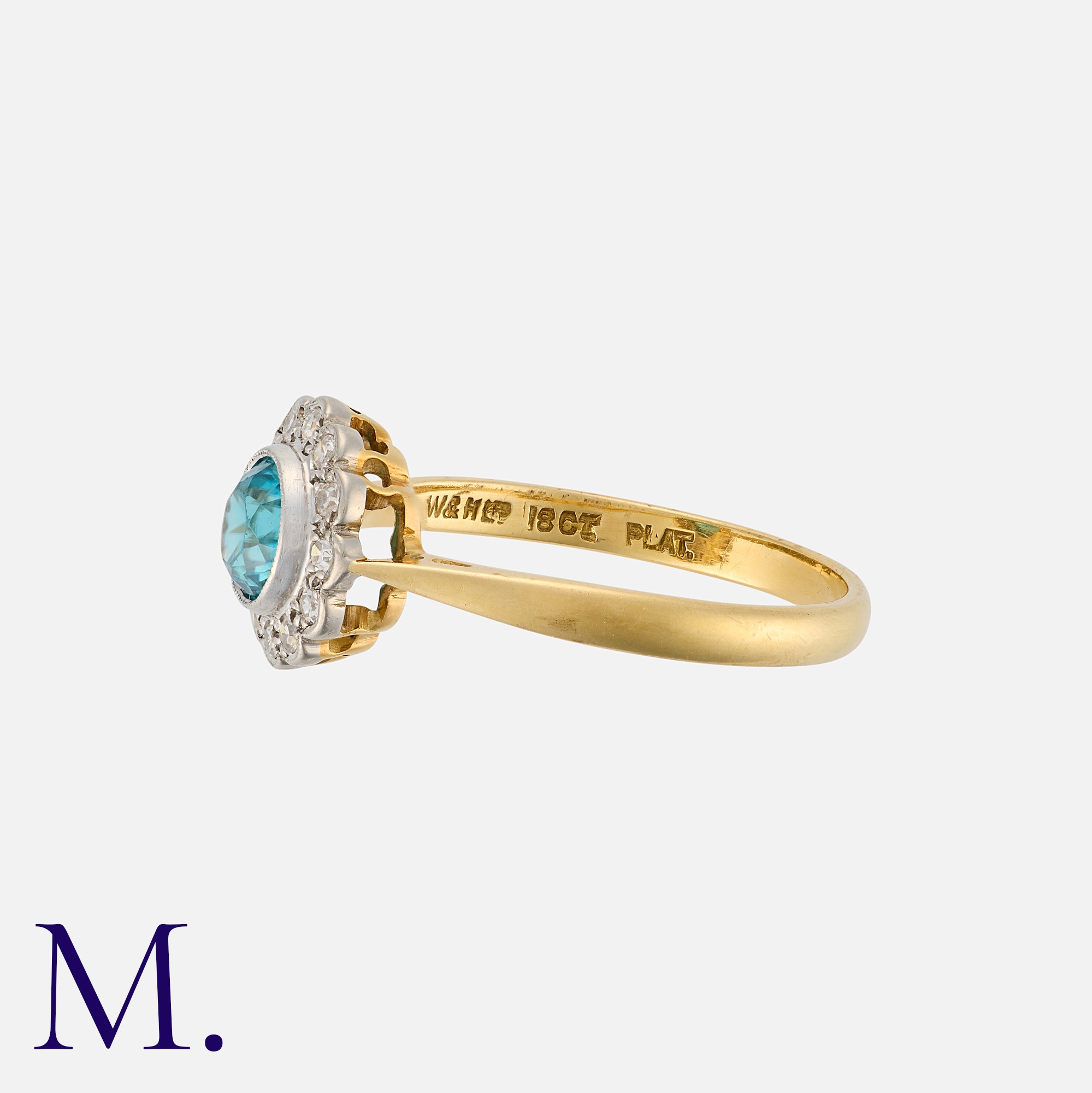 A Zircon and Diamond Cluster Ring in 18 carat gold and platinum, set with a principal round cut zircon within a border of round cut diamonds. Marked W&HLtd, 18ct PLAT.
