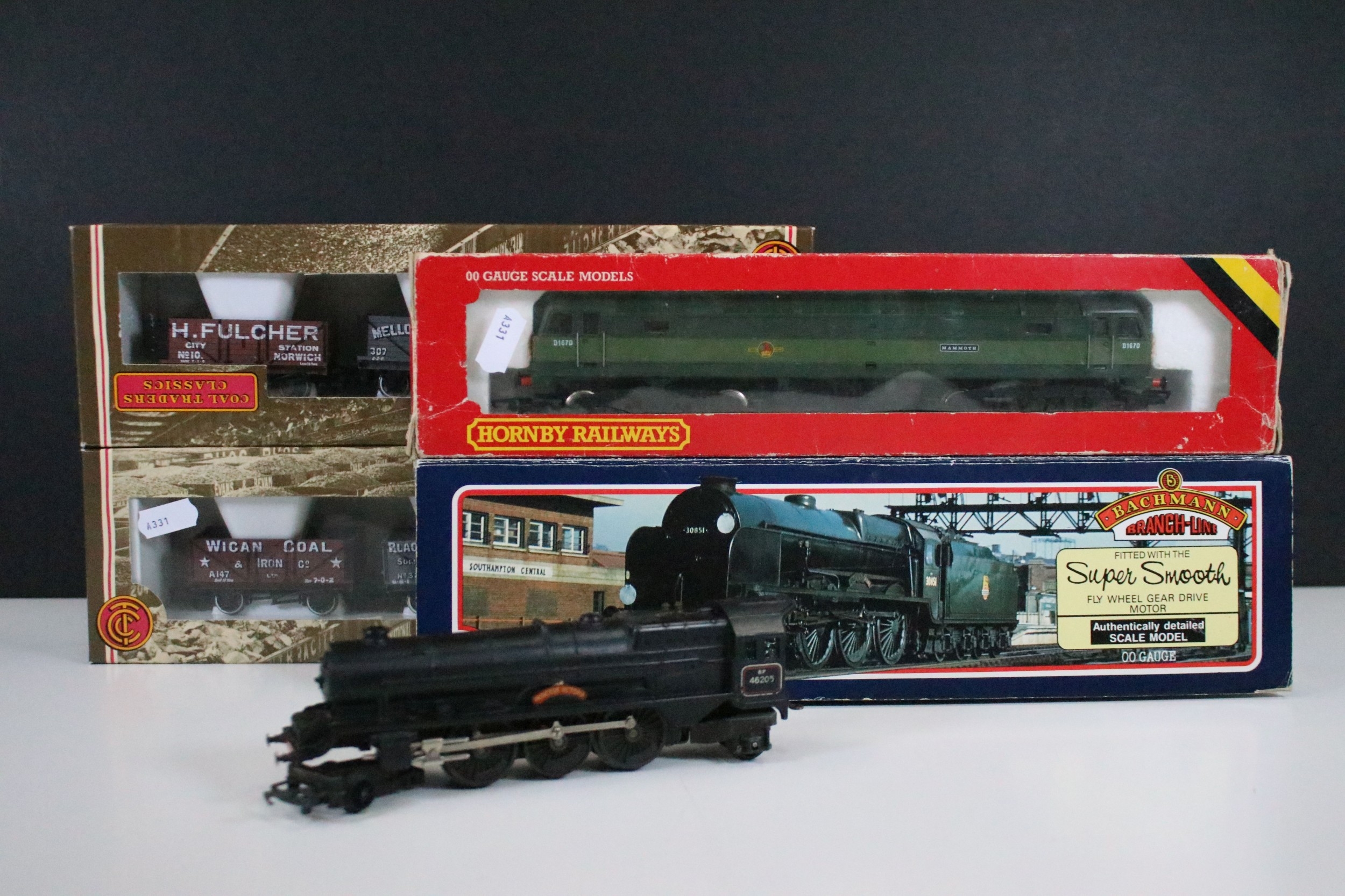 Collection of OO gauge locomotives and items of rolling stock to include 2 x boxed locomotives featuring Bachmann 31-401 Lord Nelson 864 Sir Martin Frobisher Malachite Green and Hornby R073 B.R. Class 47 Diesel Locomotive, 2 x boxed Coal Traders Classics (33-030 East Anglia and 33-028 North West) and Princess Victoria 2-6-2 8P 46205