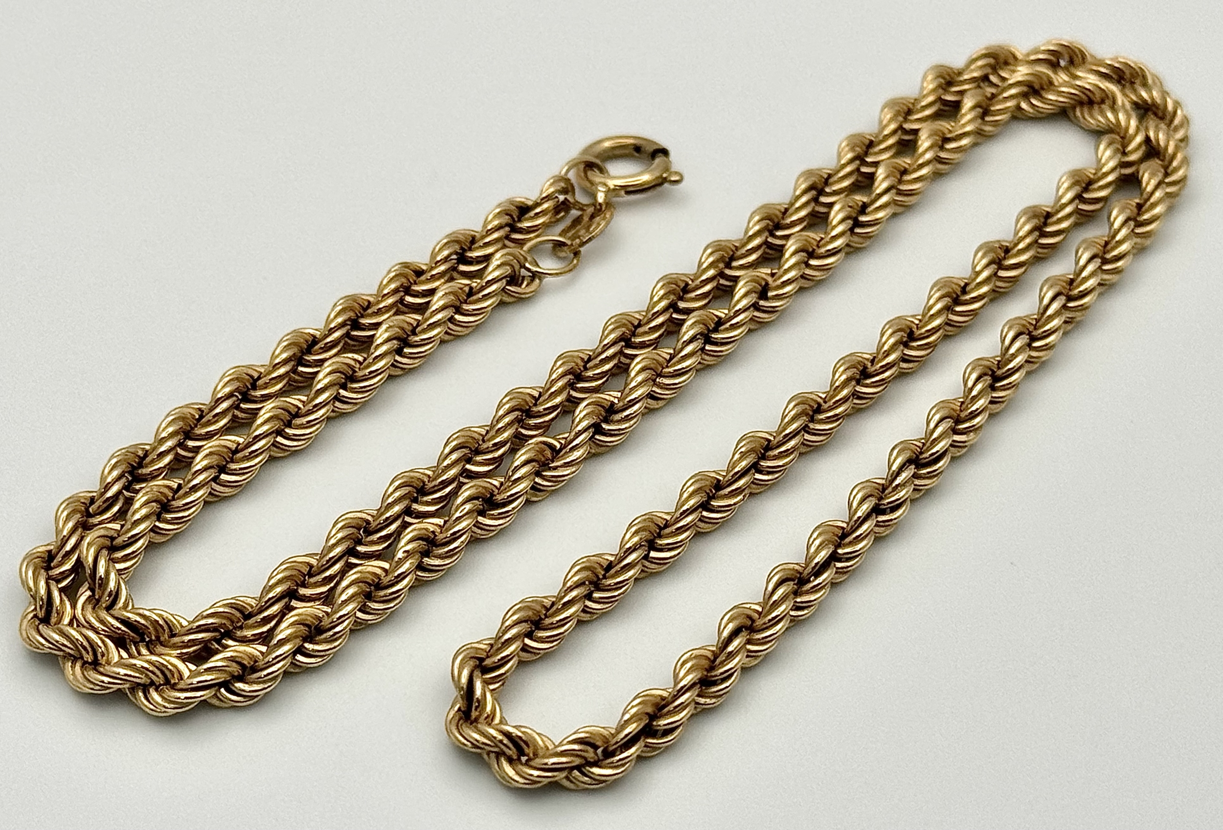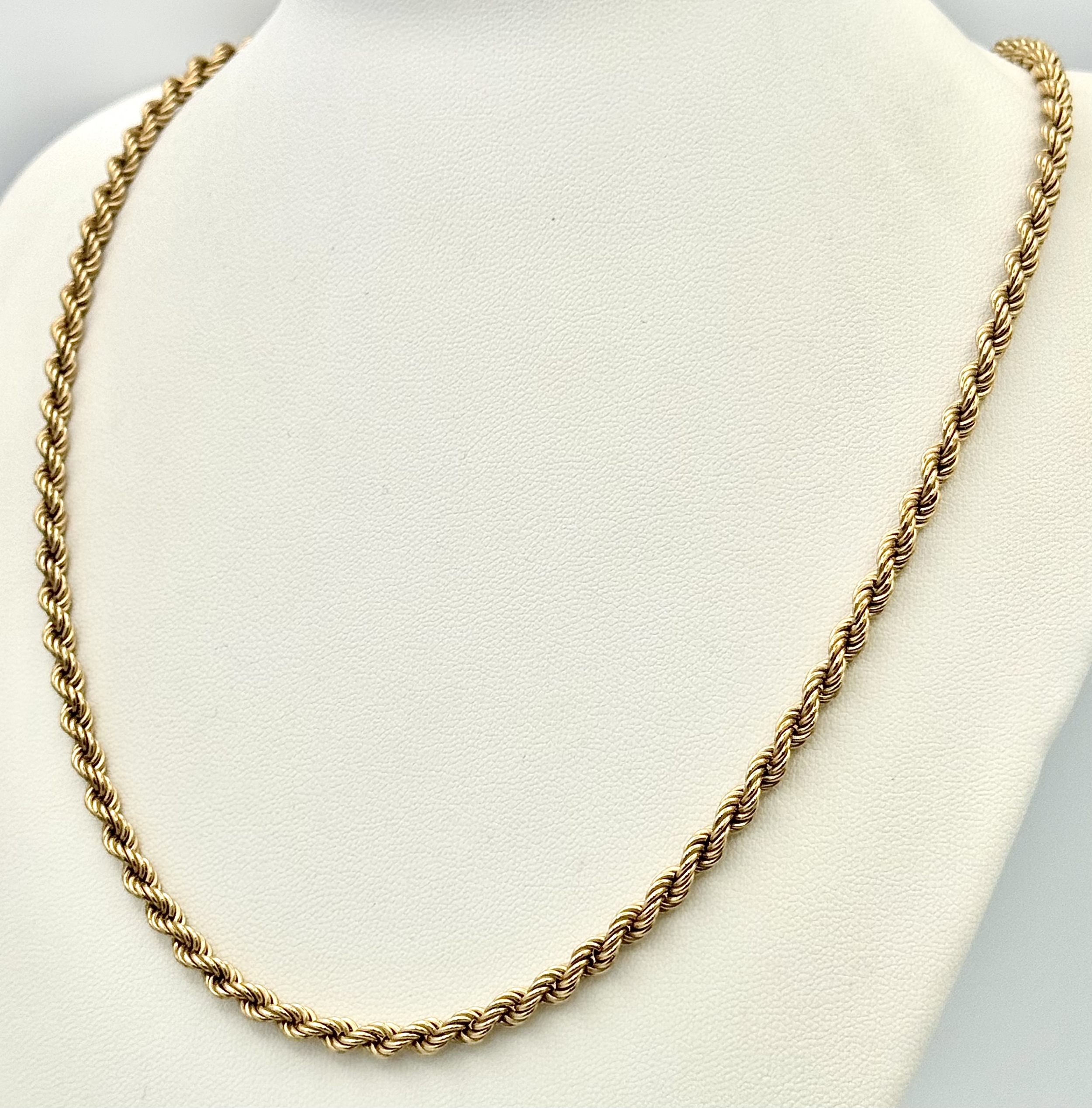Classic 9 CARAT GOLD ROPE NECKLACE. 7.29 grams. 50 cm. Beautiful piece of jewellery, please see pictures.