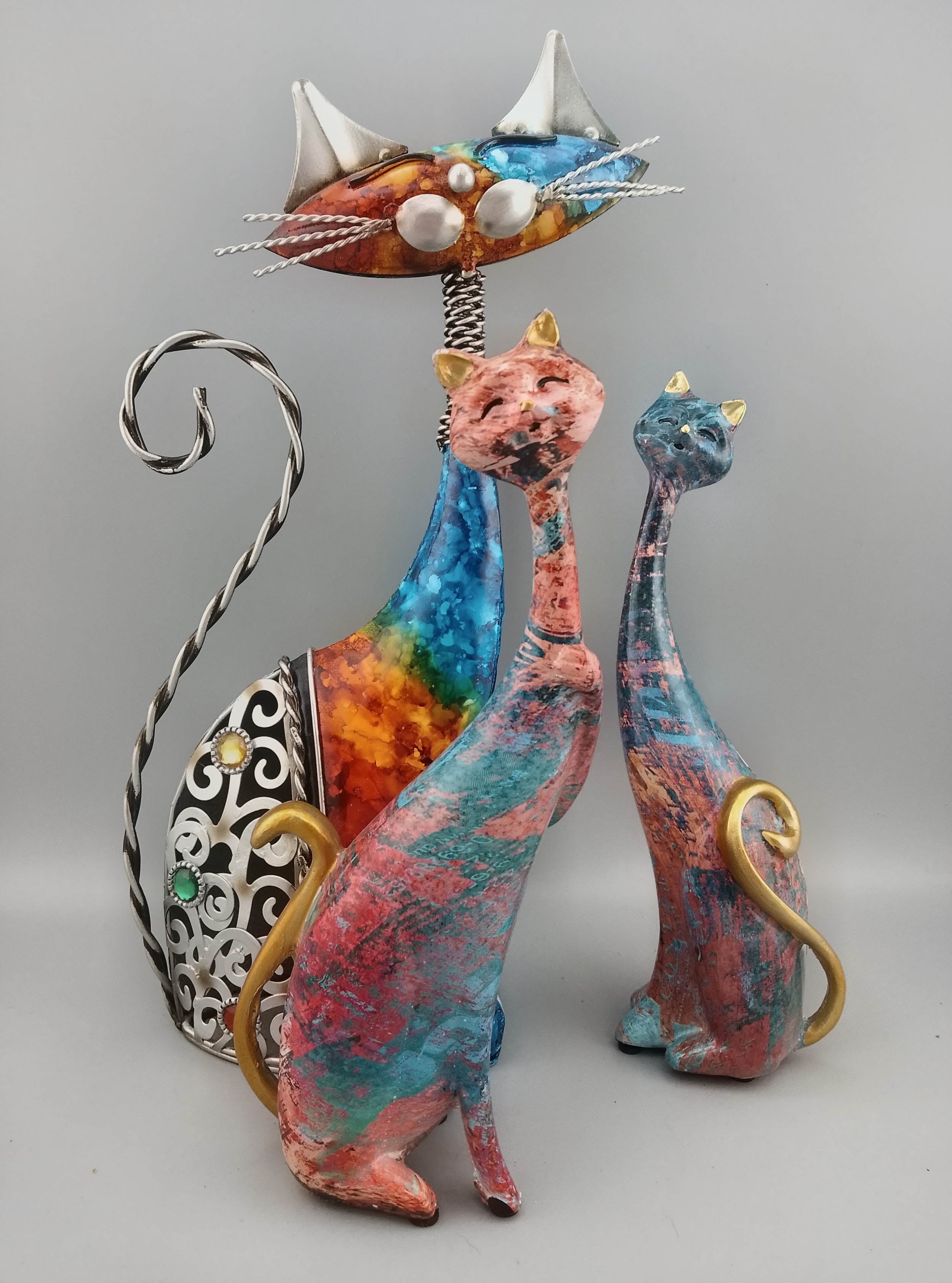 Hand Painted Metal Cat Ornament Julianna Natural World Gems Statue + 2 other cat figures