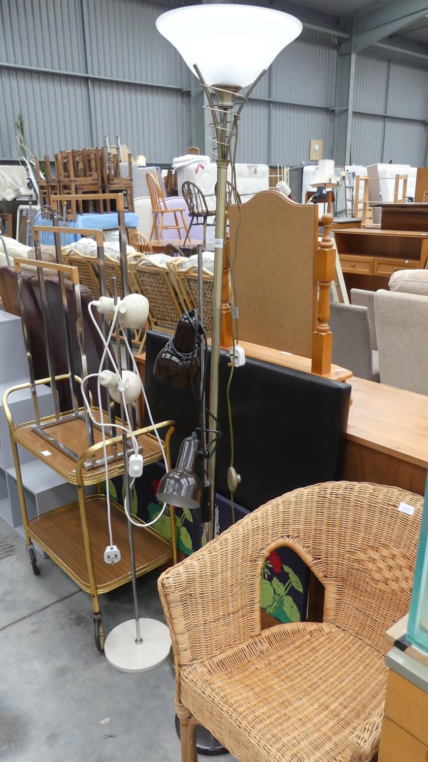 Trolley Table, Pictures, Lamps, Wicker Chair, etc