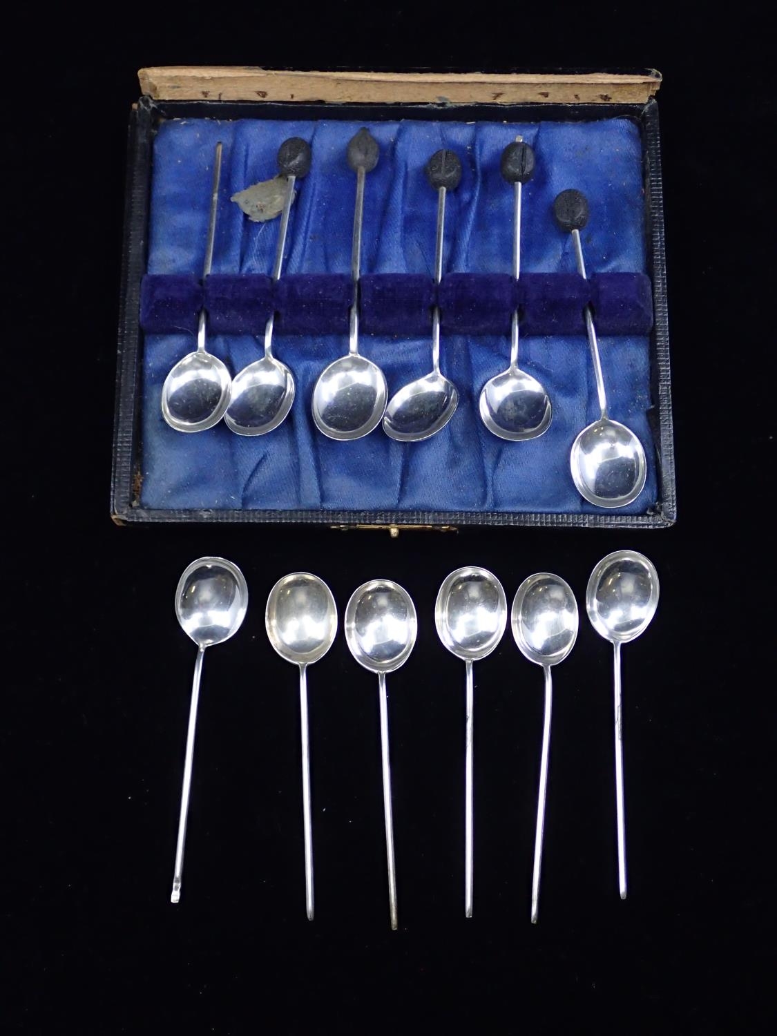 A collection of silver coffee bean spoons and other silver teaspoons, total weight approx. 66.8 grams