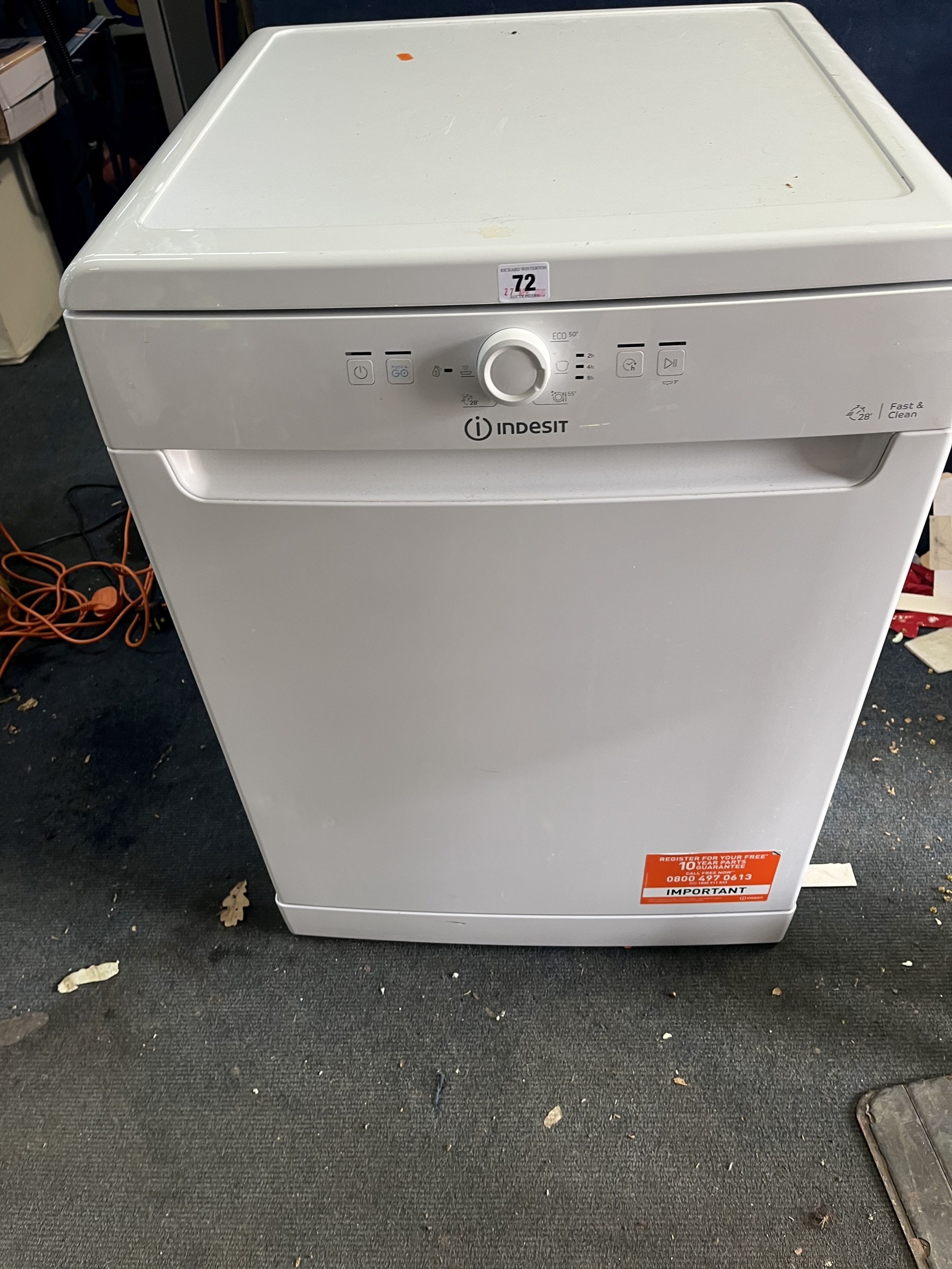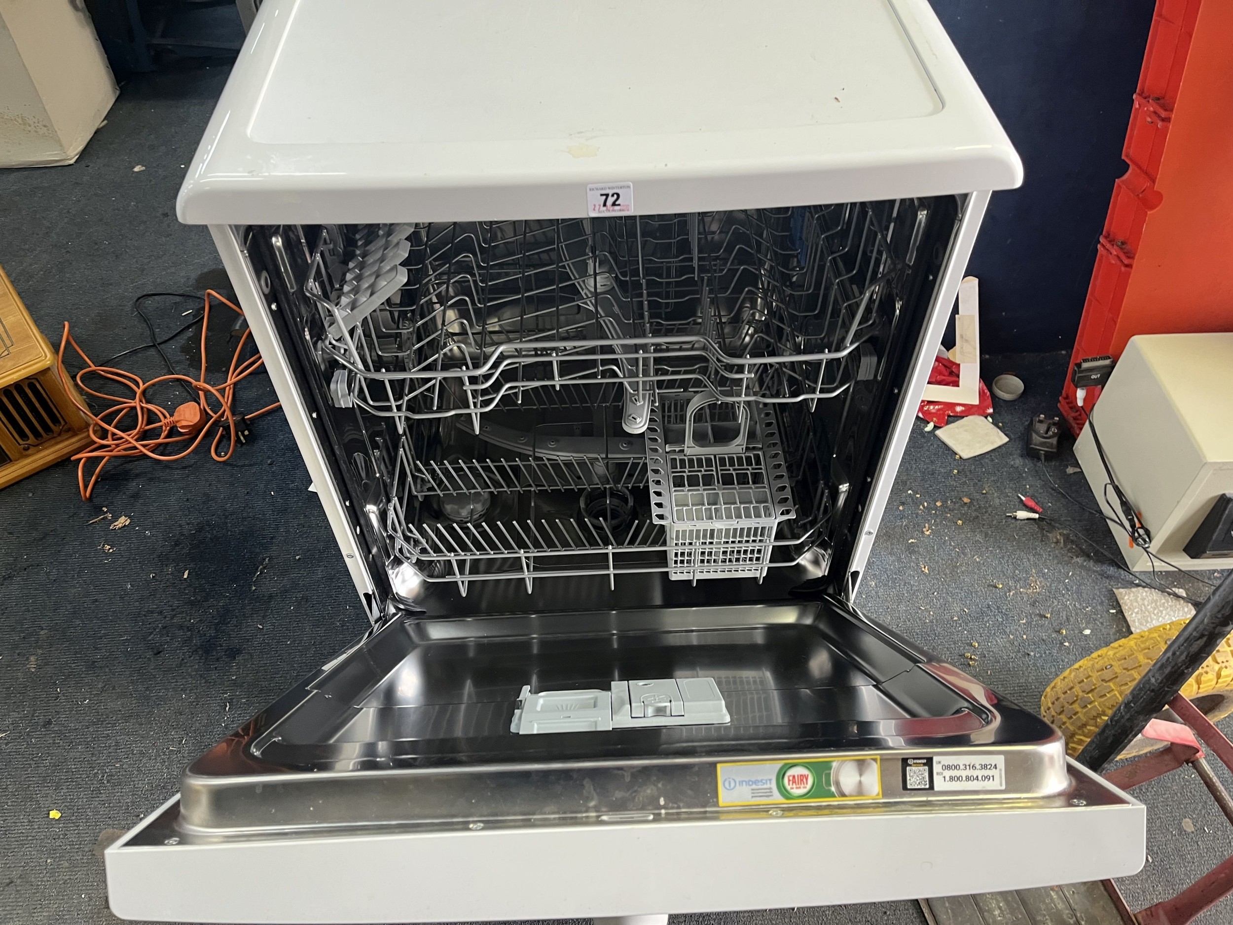 AN INDESIT DISHWASHER width 60cm, depth 60cm, height 85cm (PAT pass, powers up but not tested any further)