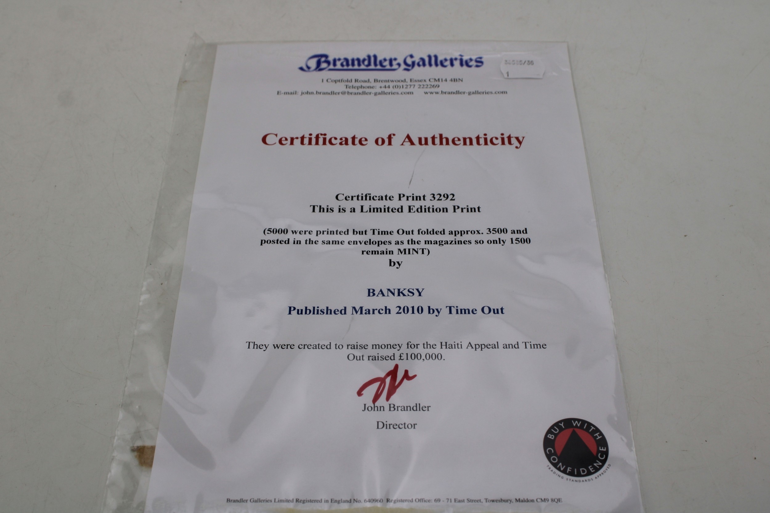 BANKSY Limited Edition Print, published March 2010 by Time Out; with Certificate of Authenticity