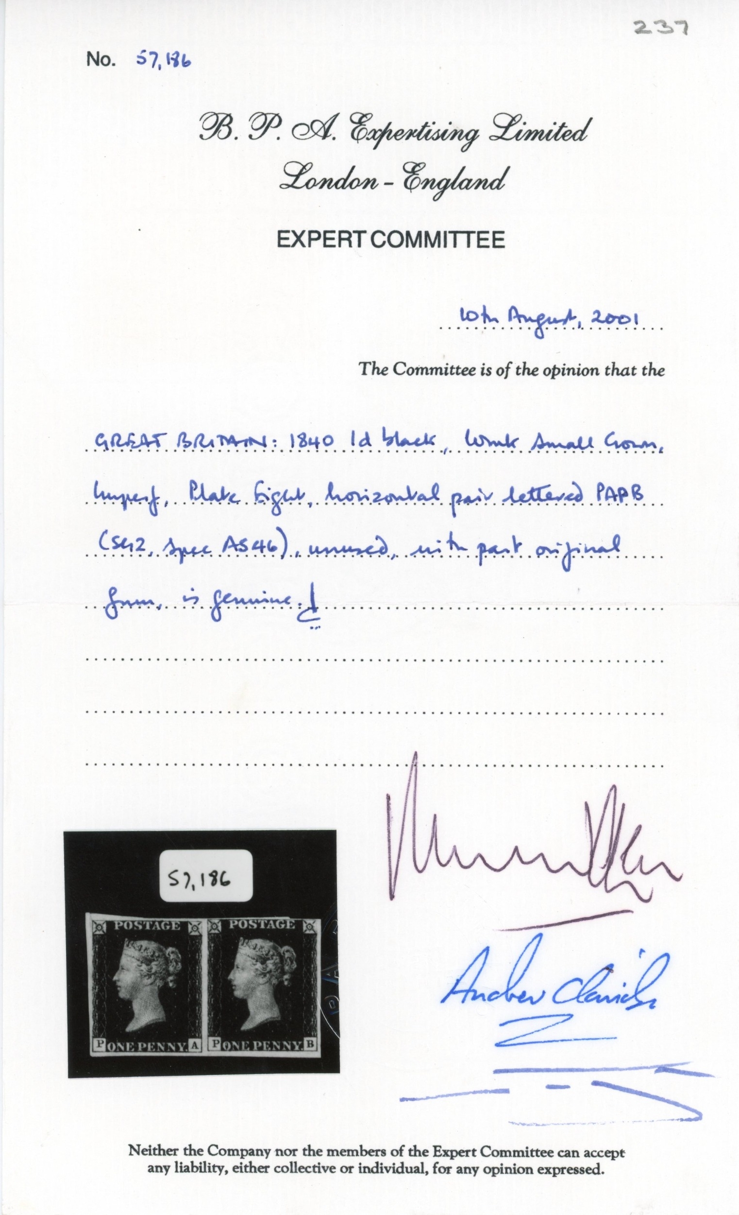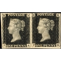 Great Britain SG2 1d Black Pl.8 mint pair