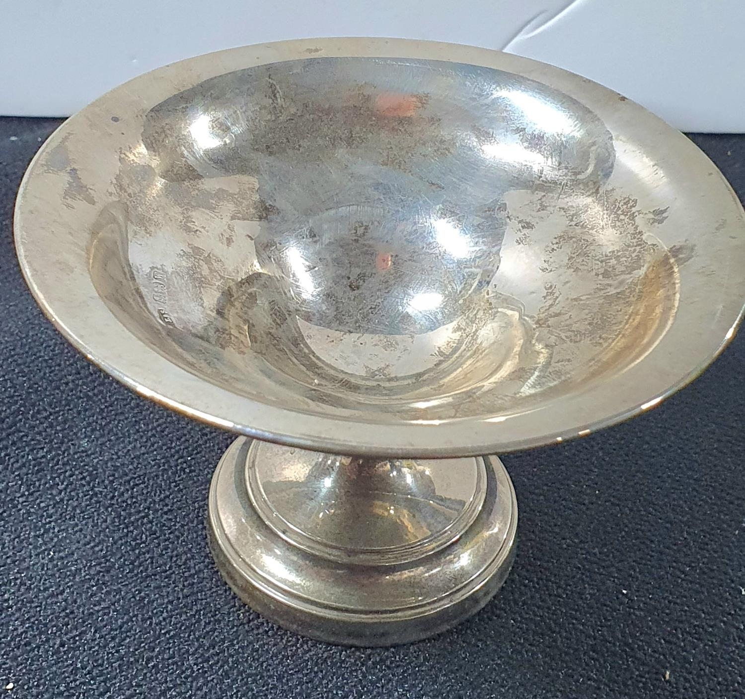A Birmingham 1921 silver pedestal dish with weighted base,98 grams gross