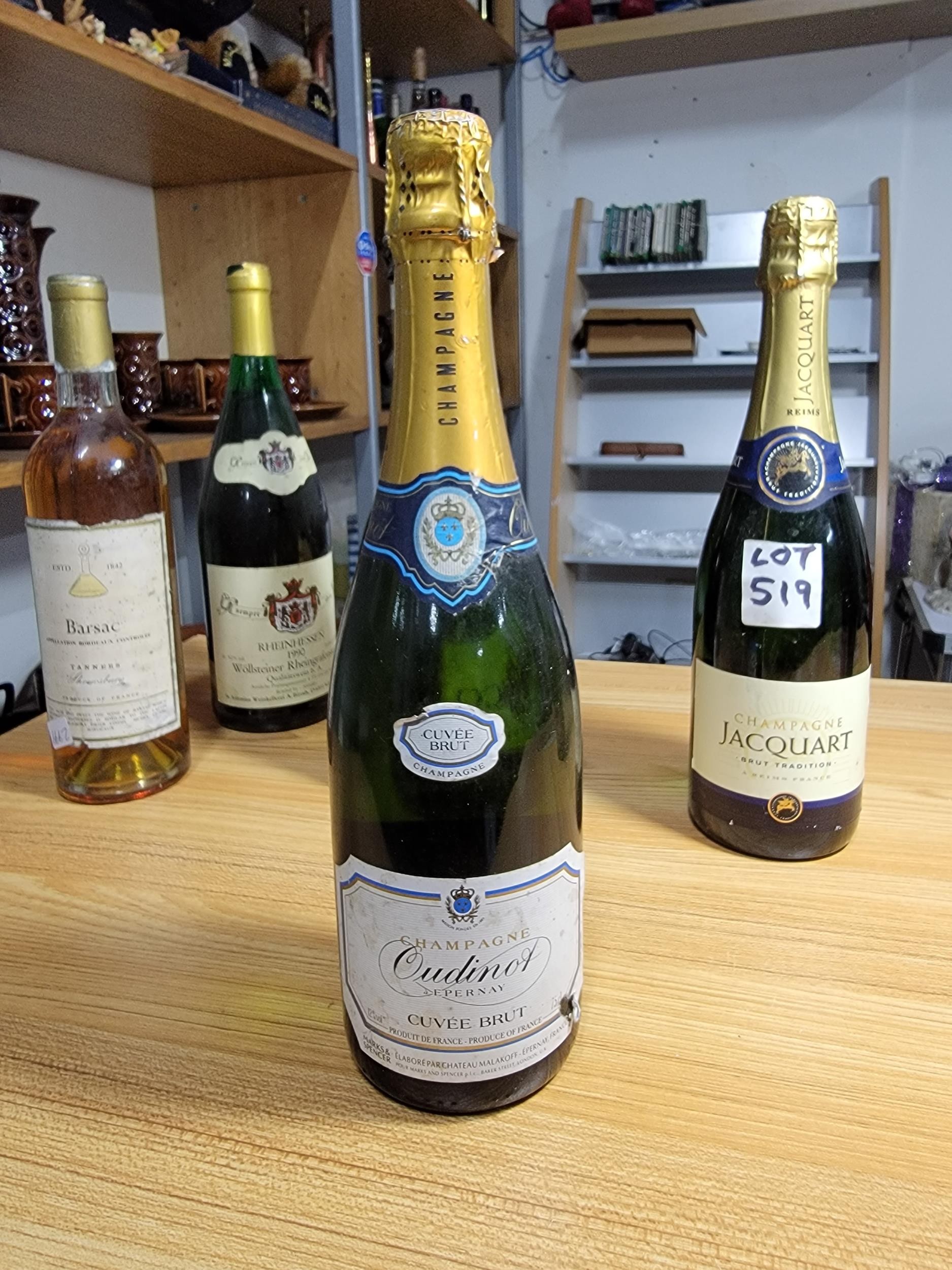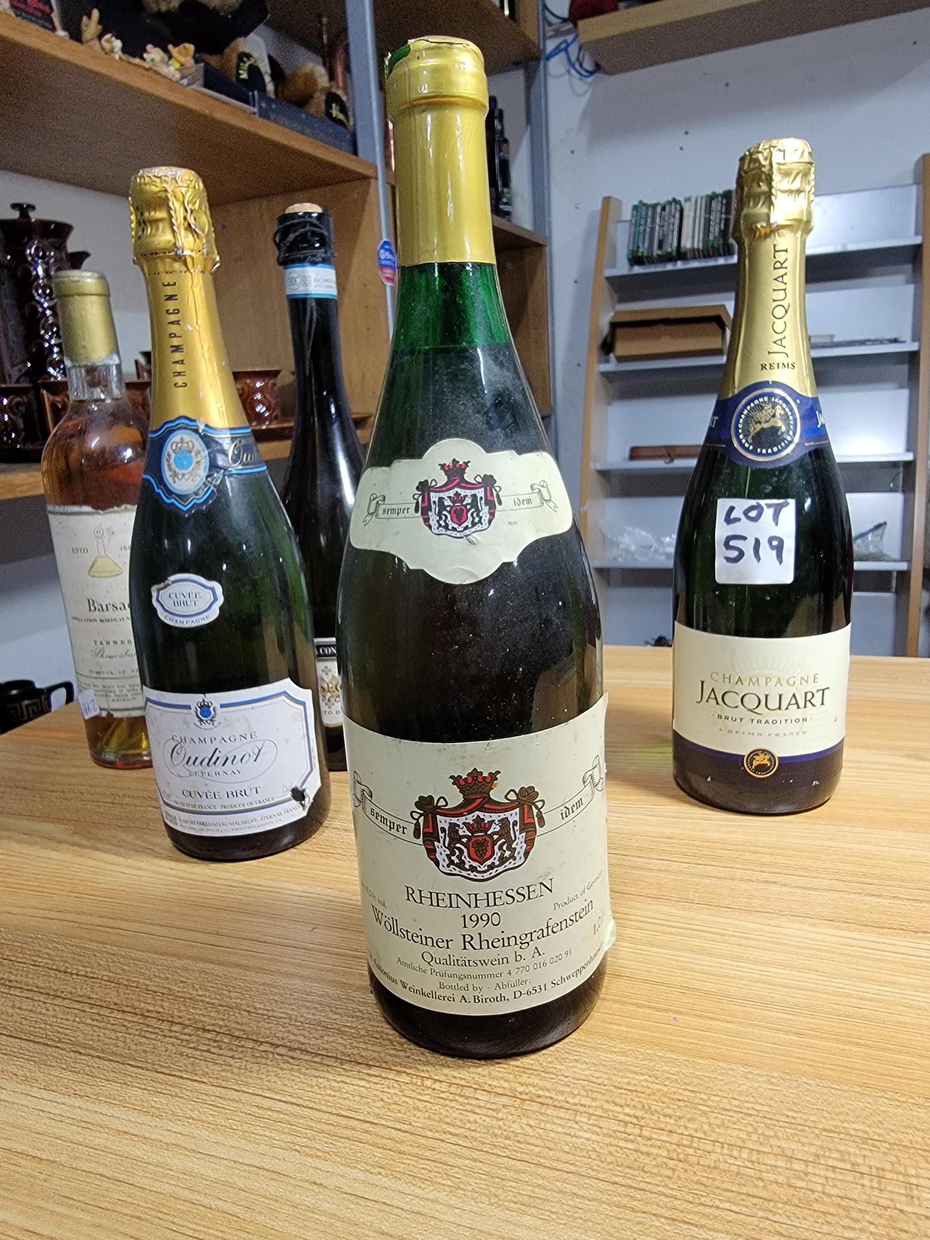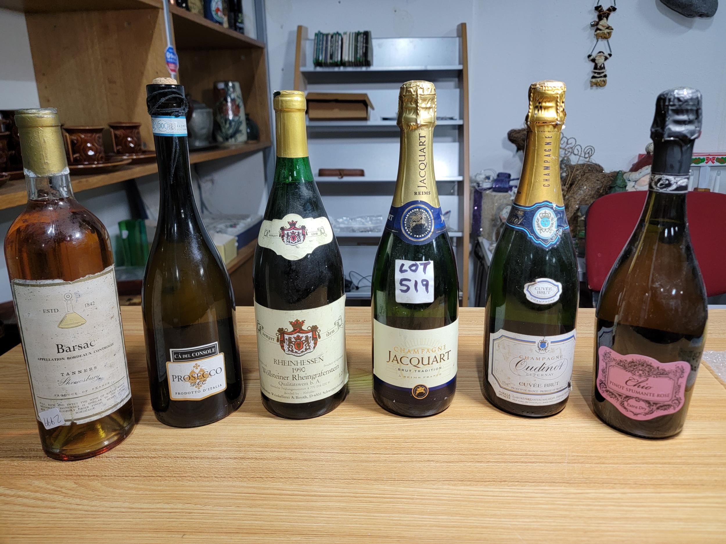 6x bottles of vintage sealed wine inc Jacquart Champagne, Barsac tanners wines, Rheinhessen 1990, M&S Oudinot Champagne, Presseco and Chio Pinot Spumante Rose