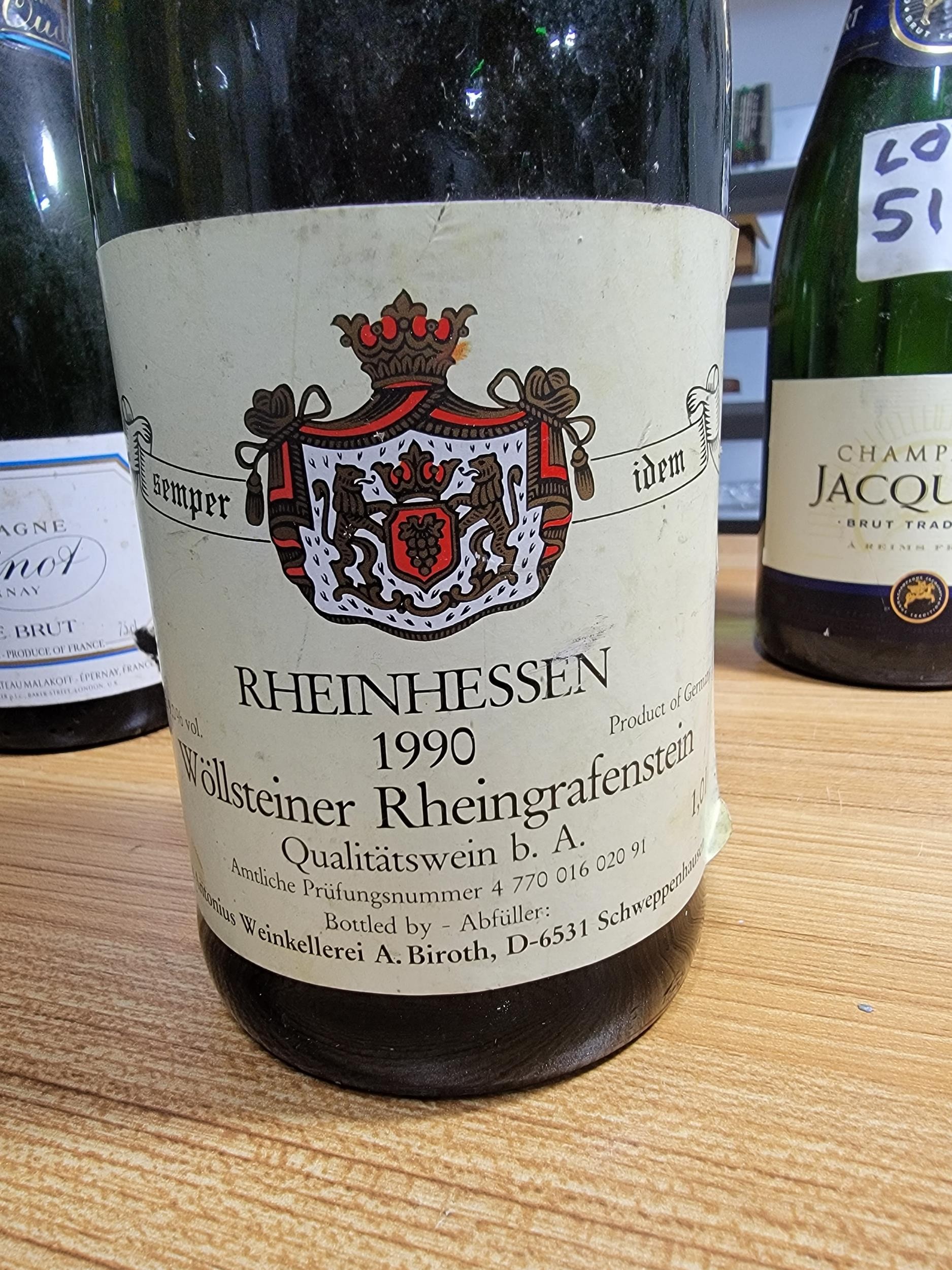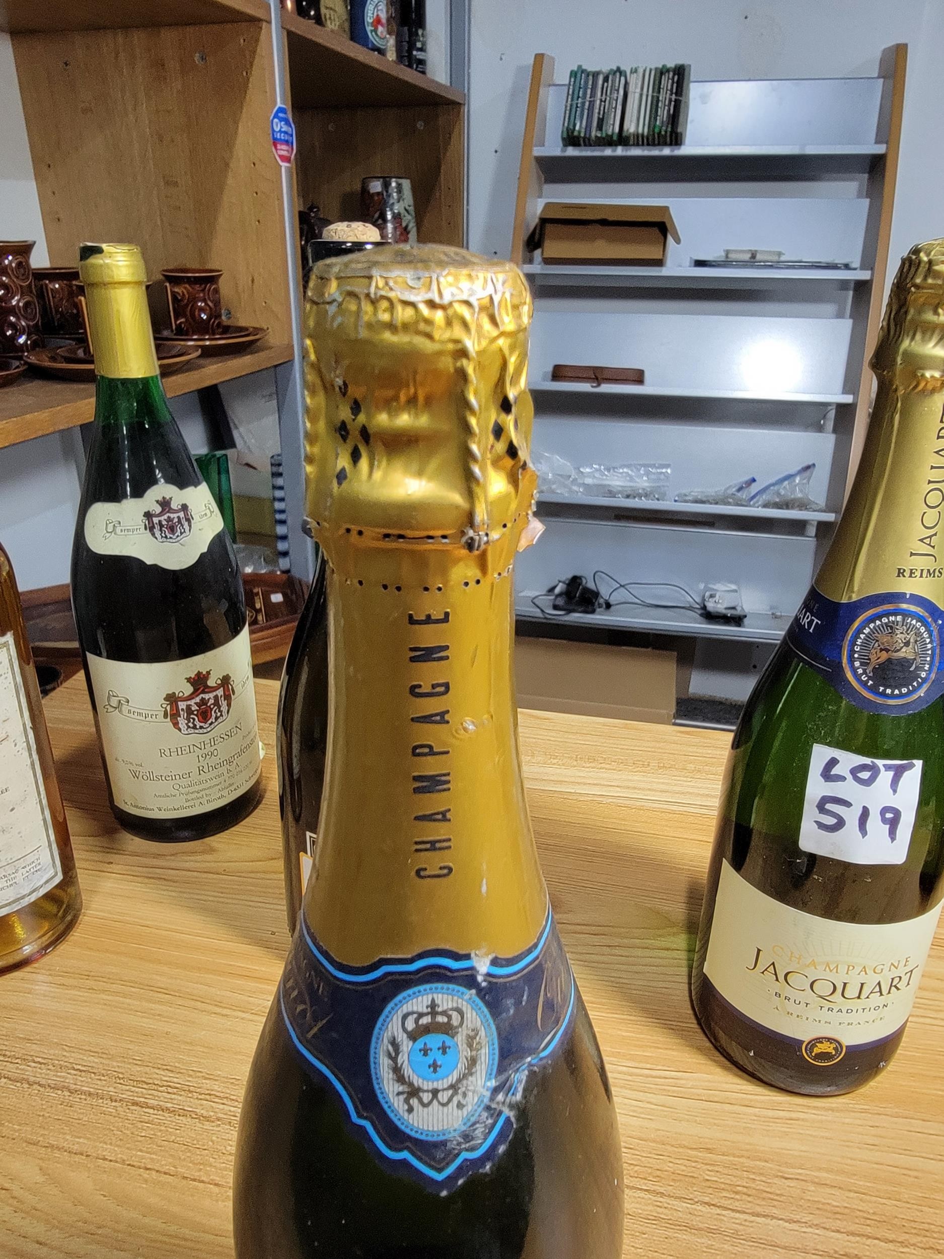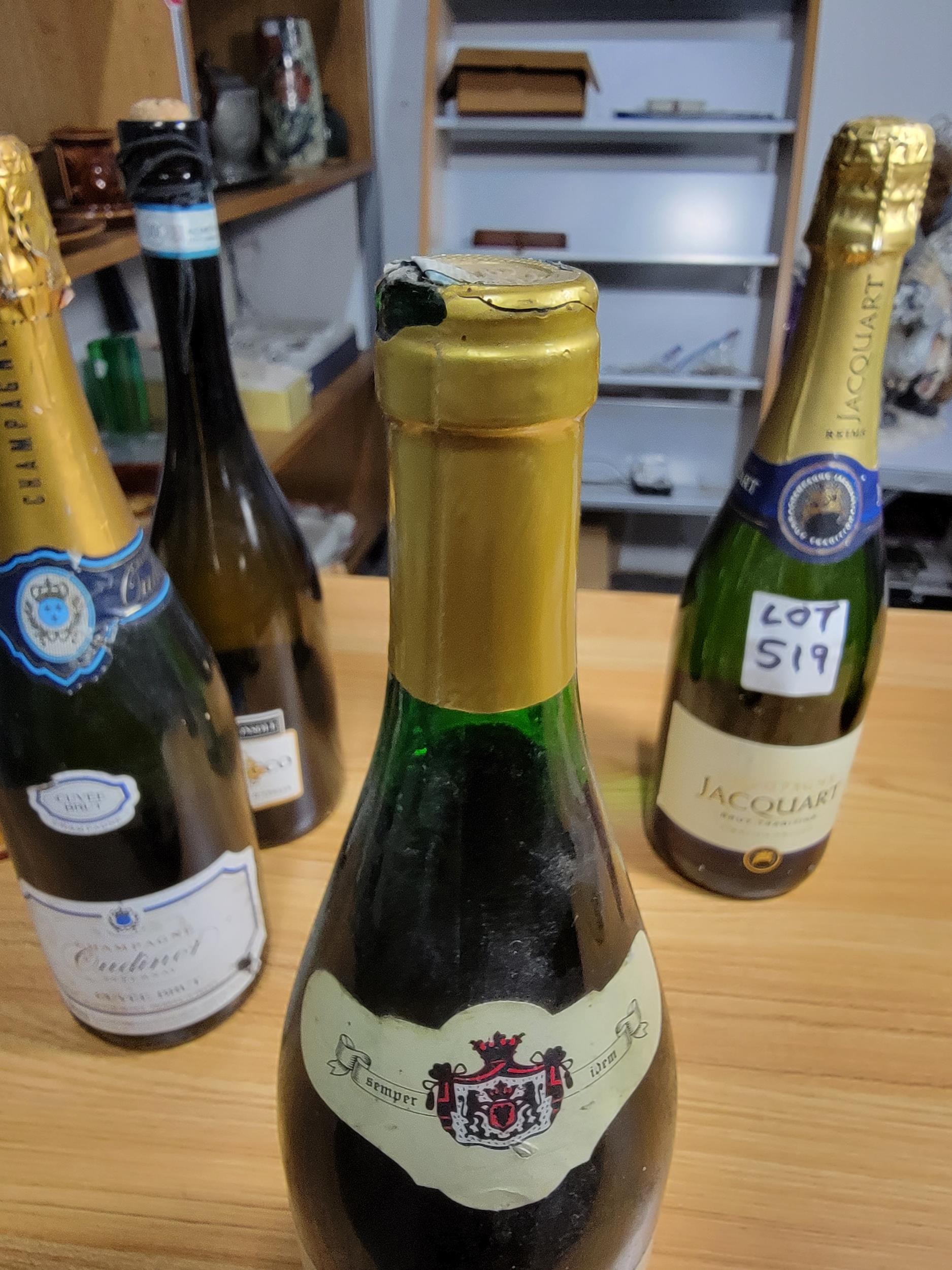 6x bottles of vintage sealed wine inc Jacquart Champagne, Barsac tanners wines, Rheinhessen 1990, M&S Oudinot Champagne, Presseco and Chio Pinot Spumante Rose
