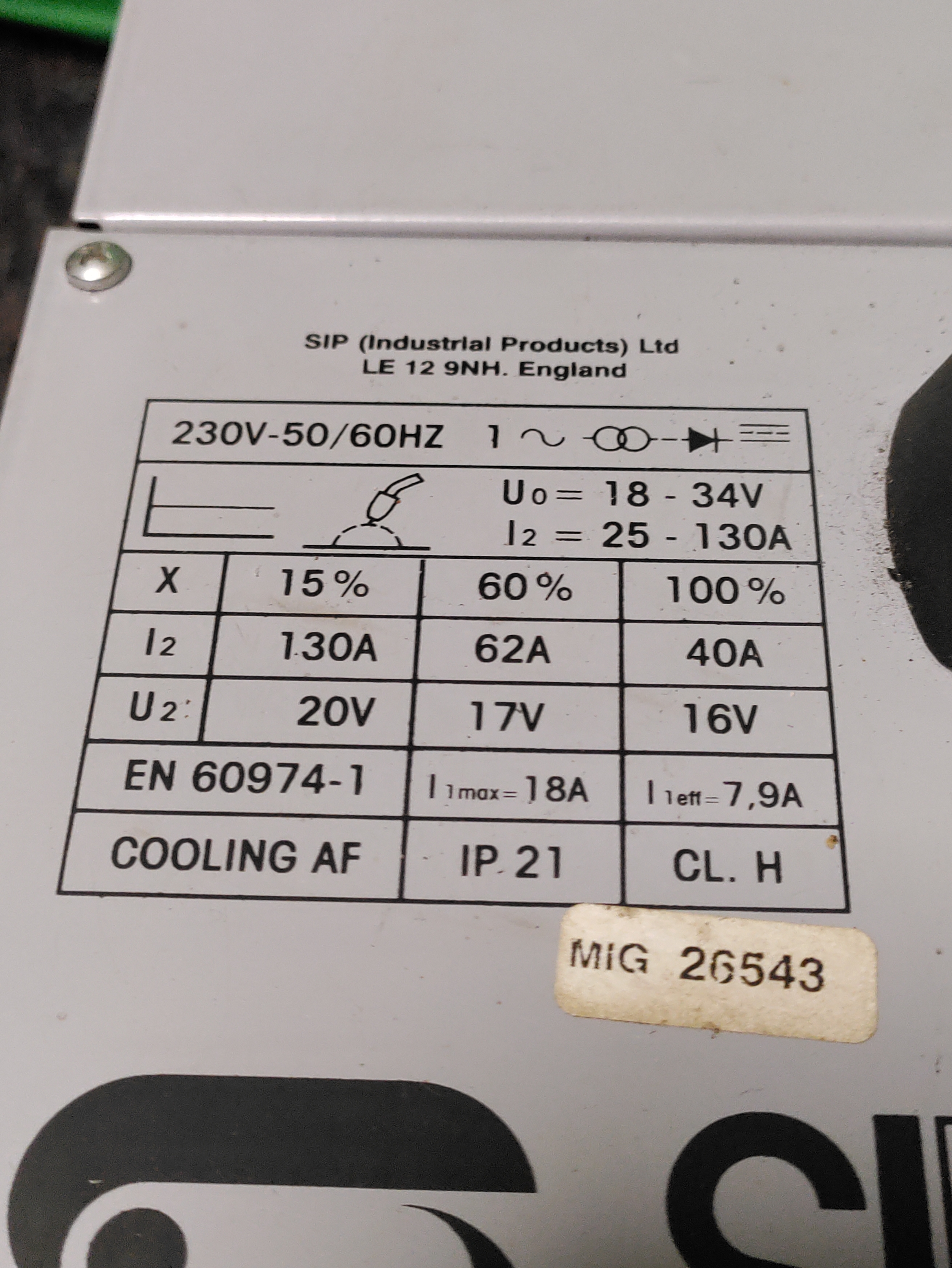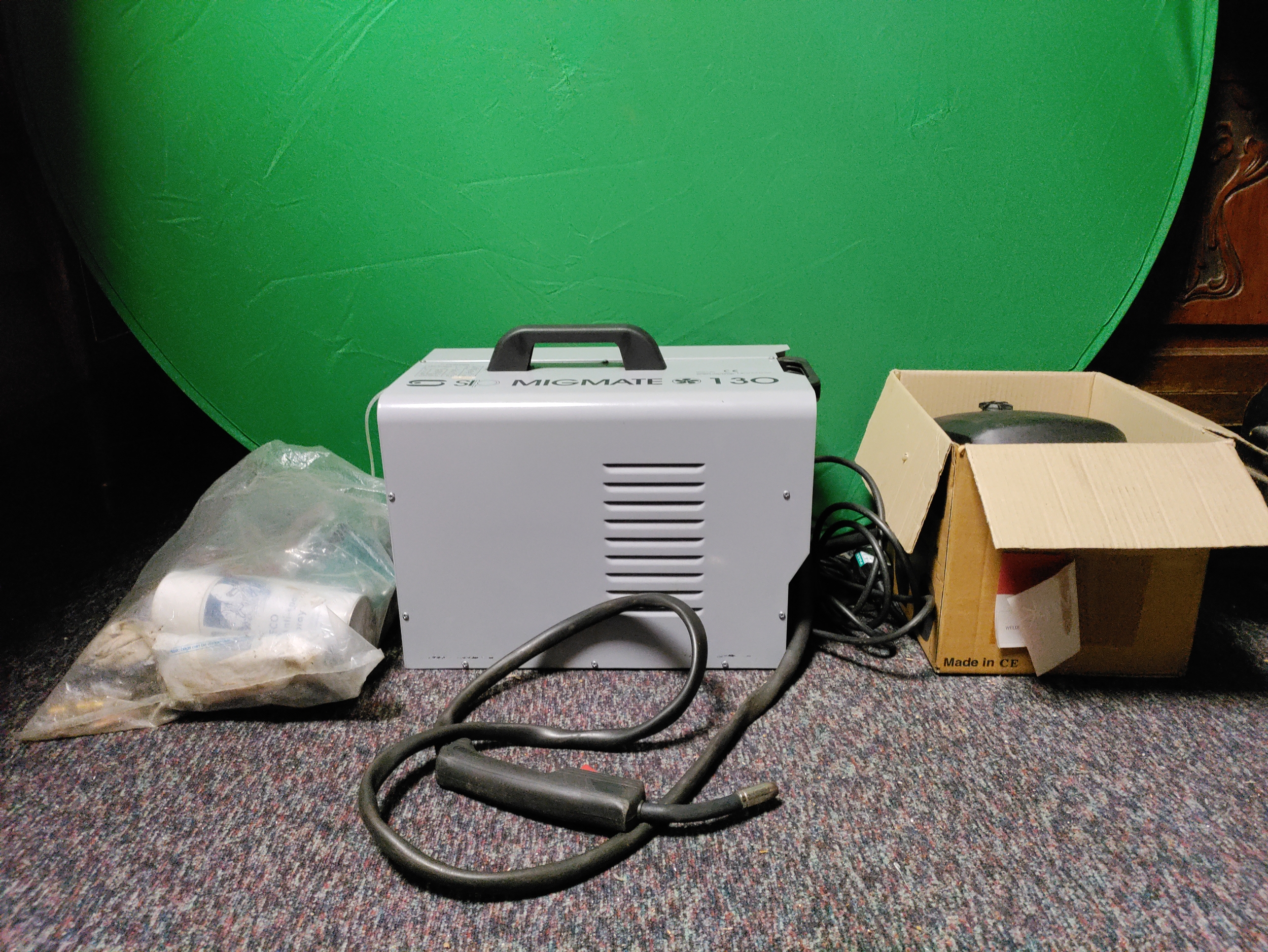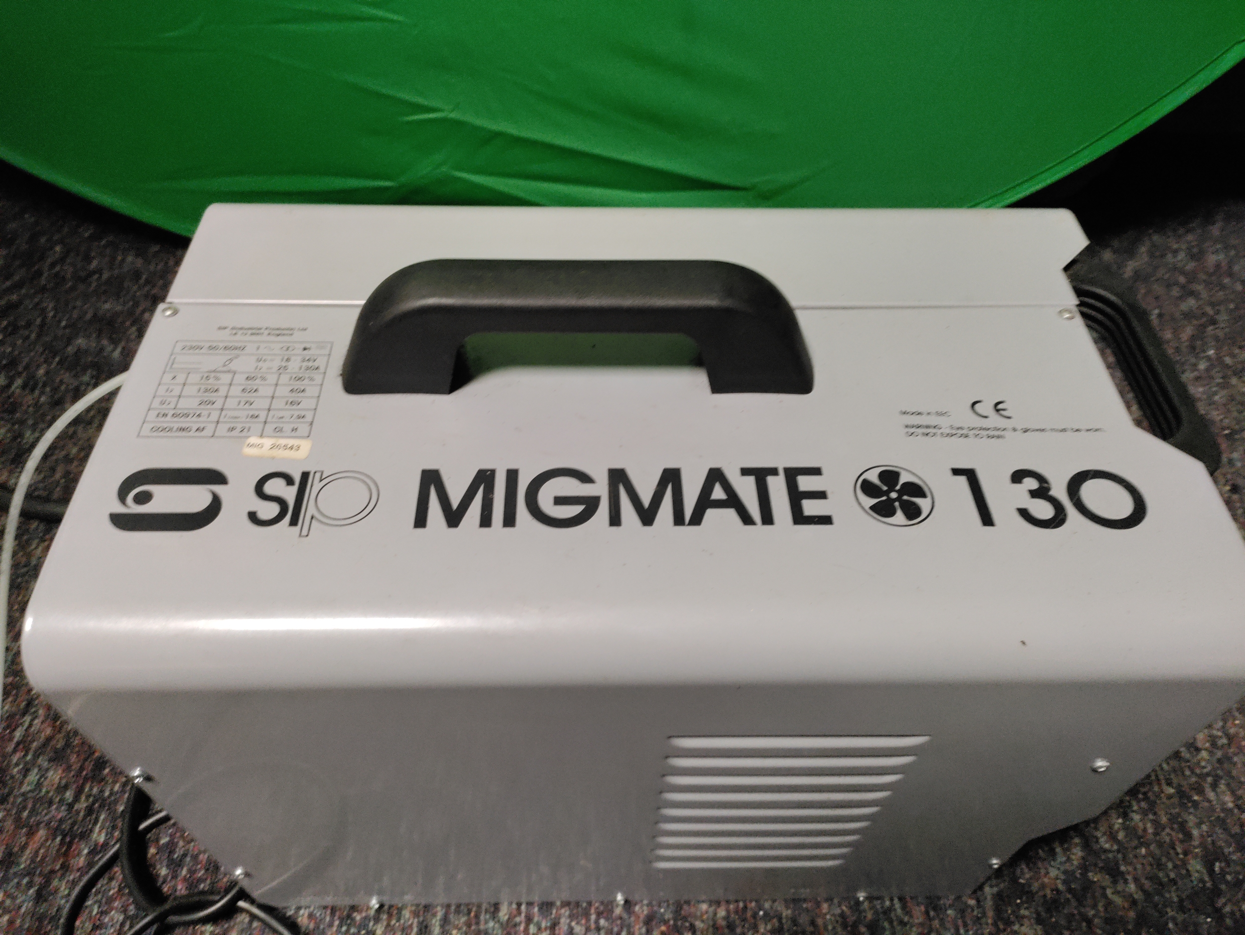 a SIP Migmate 130 welder. To include welding mask & equipment.