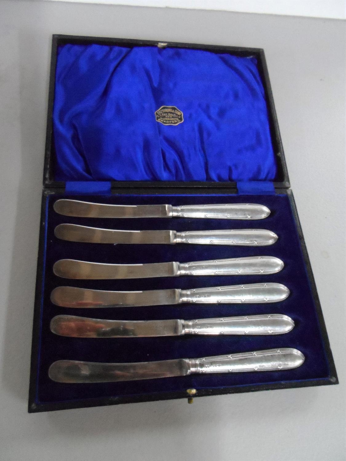 Cased set of 1905 Fattorini, Sheffield silver handled butter knives