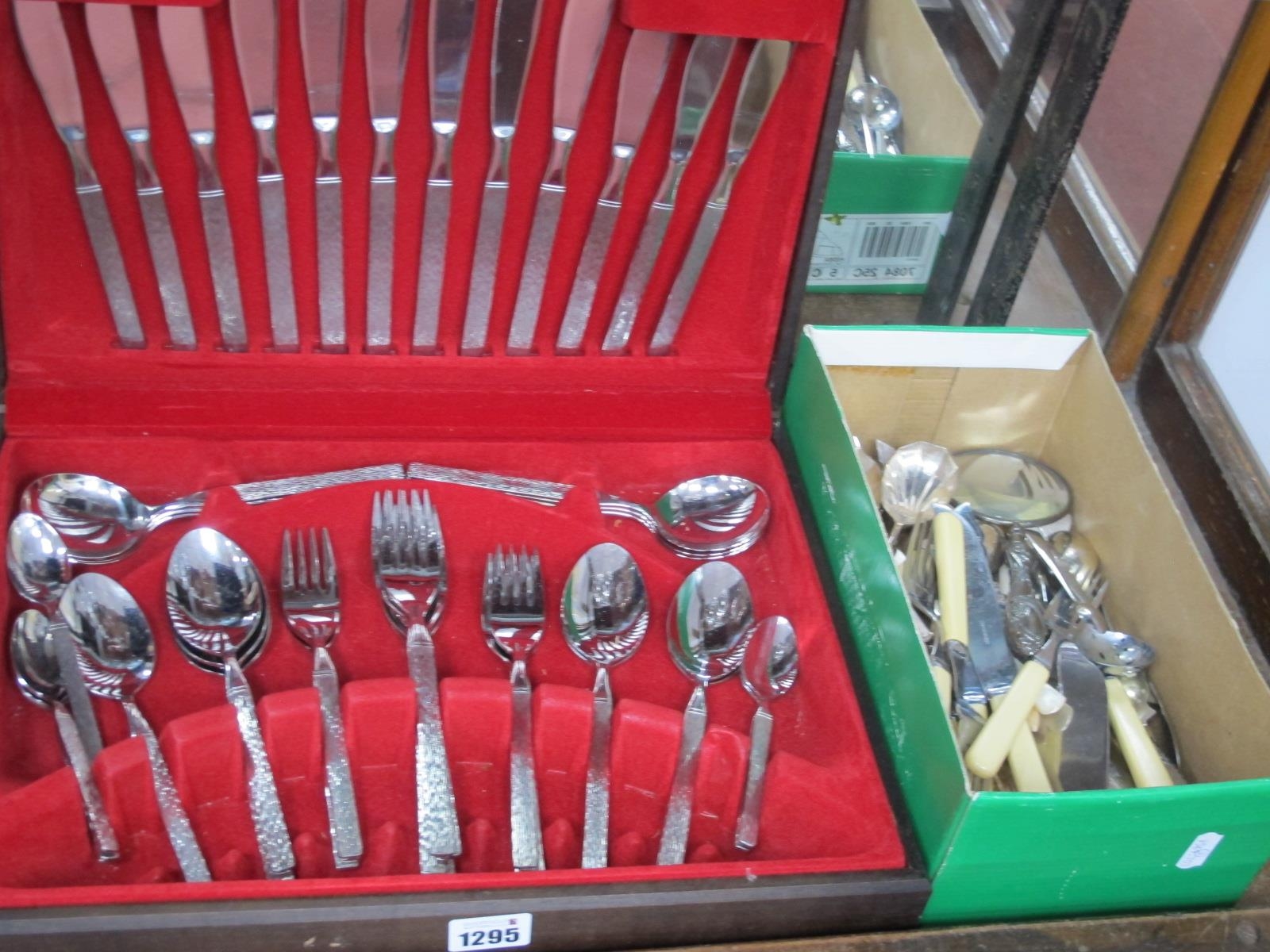 Silver Handled Magnifying Glass, cutlery;- One Box. Oneida 18/8 canteen of cutlery.