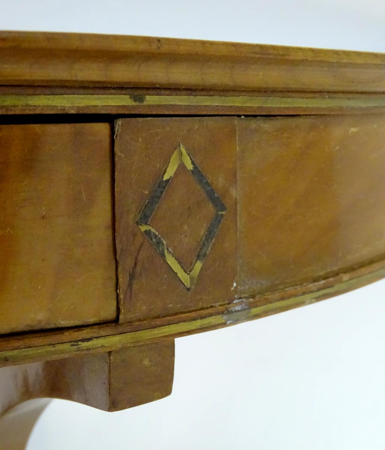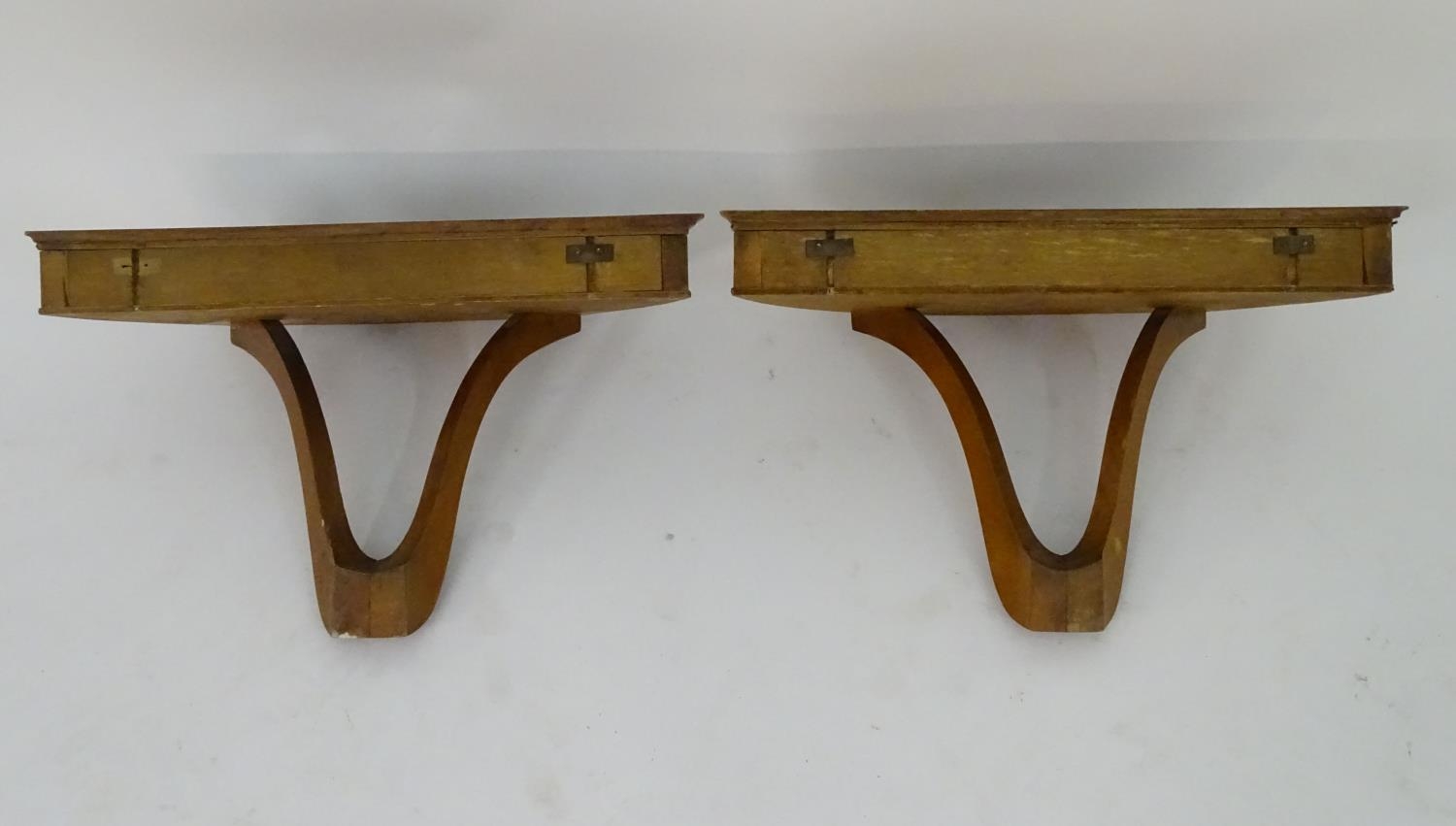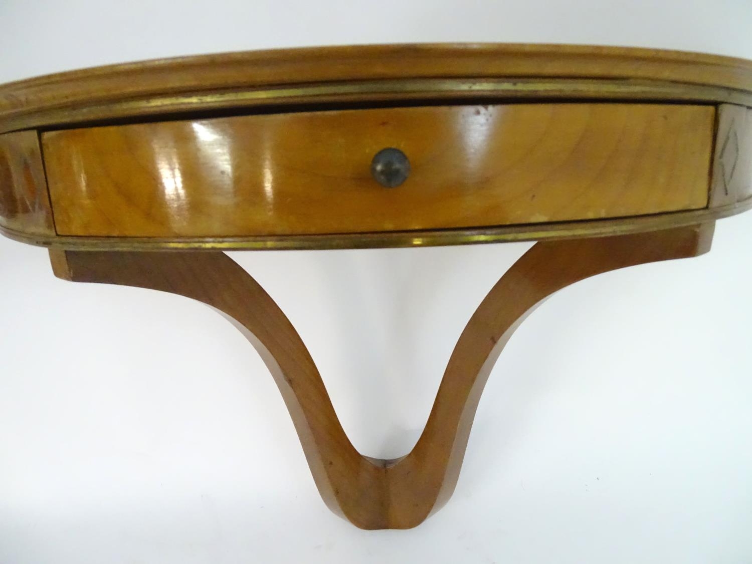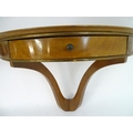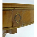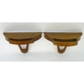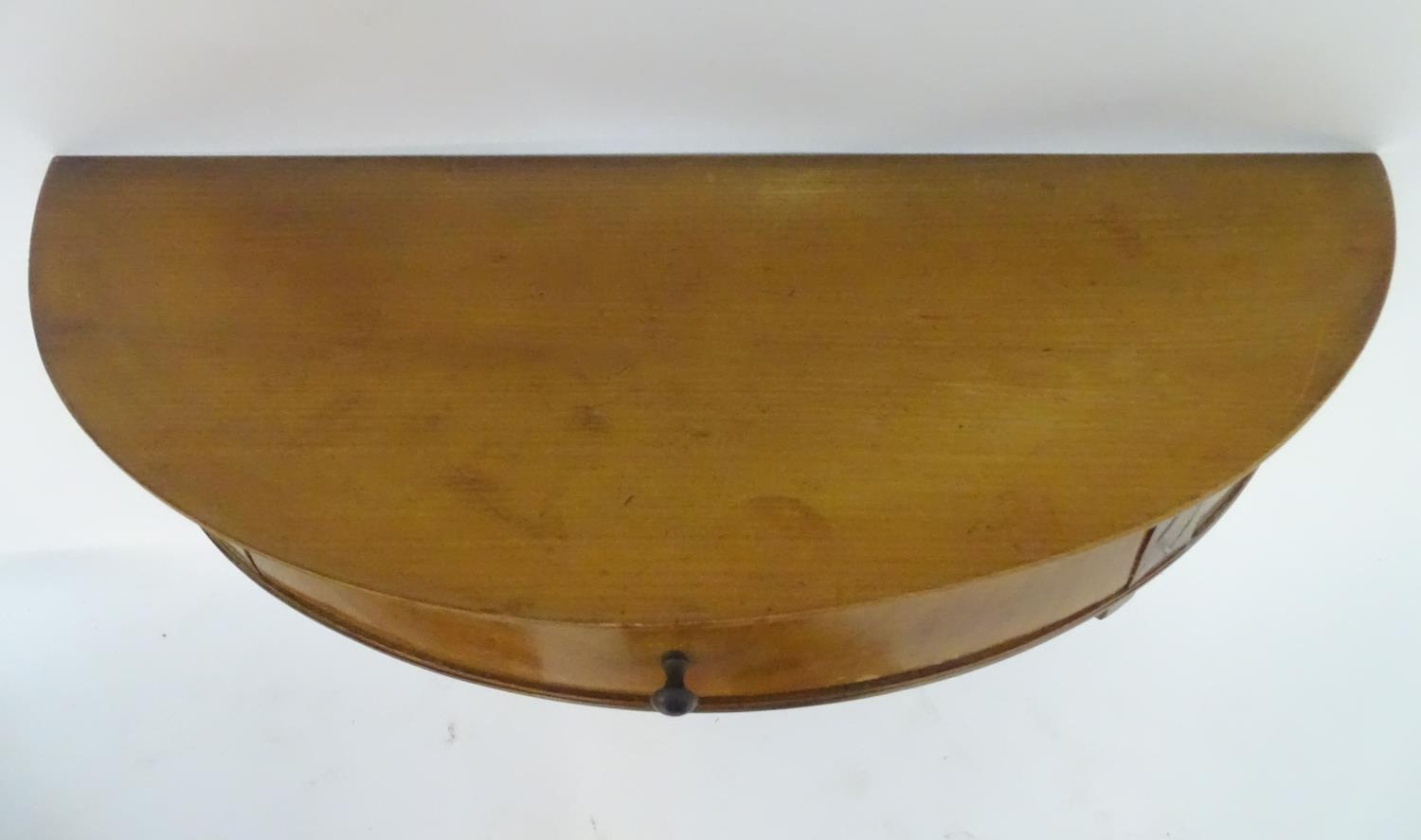 A pair of French demi lune console table with reeded edges and a single short drawer each. 20 1/2" wide x 8 1/2" deep x 12 1/2" high.