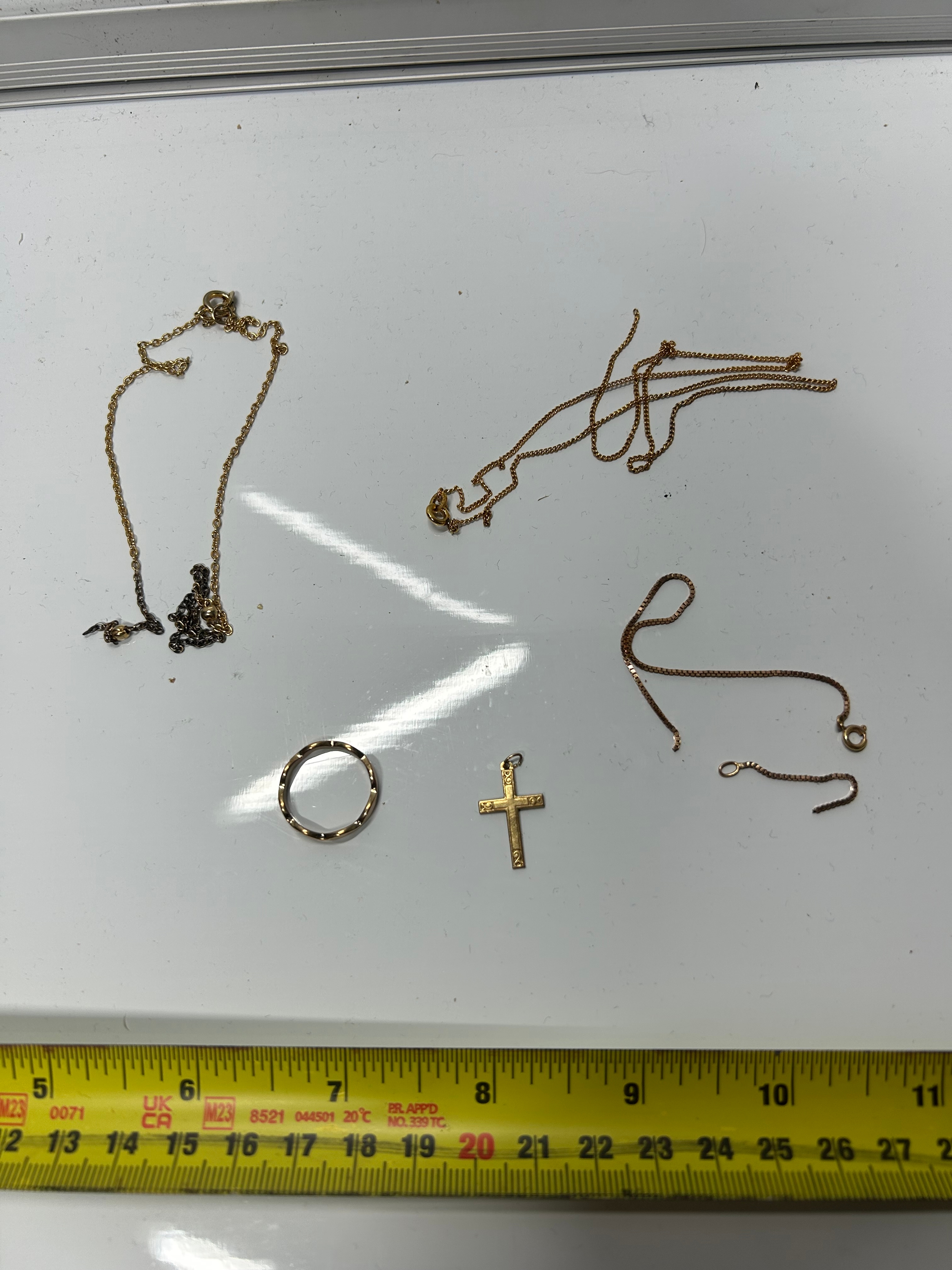 Gold tone jewellery bundle inc rolled gold cross and chain - As Found