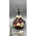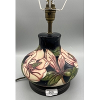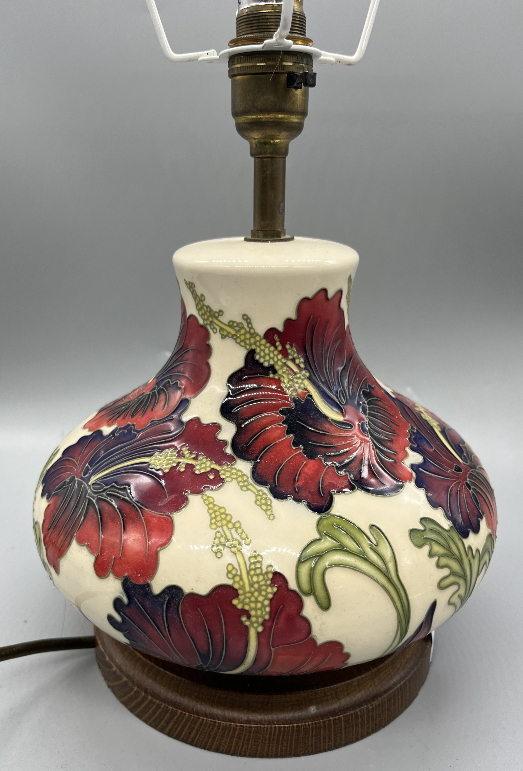 Moorcroft Pottery hibiscus type floral on a cream ground table lamp, H37.5cm
