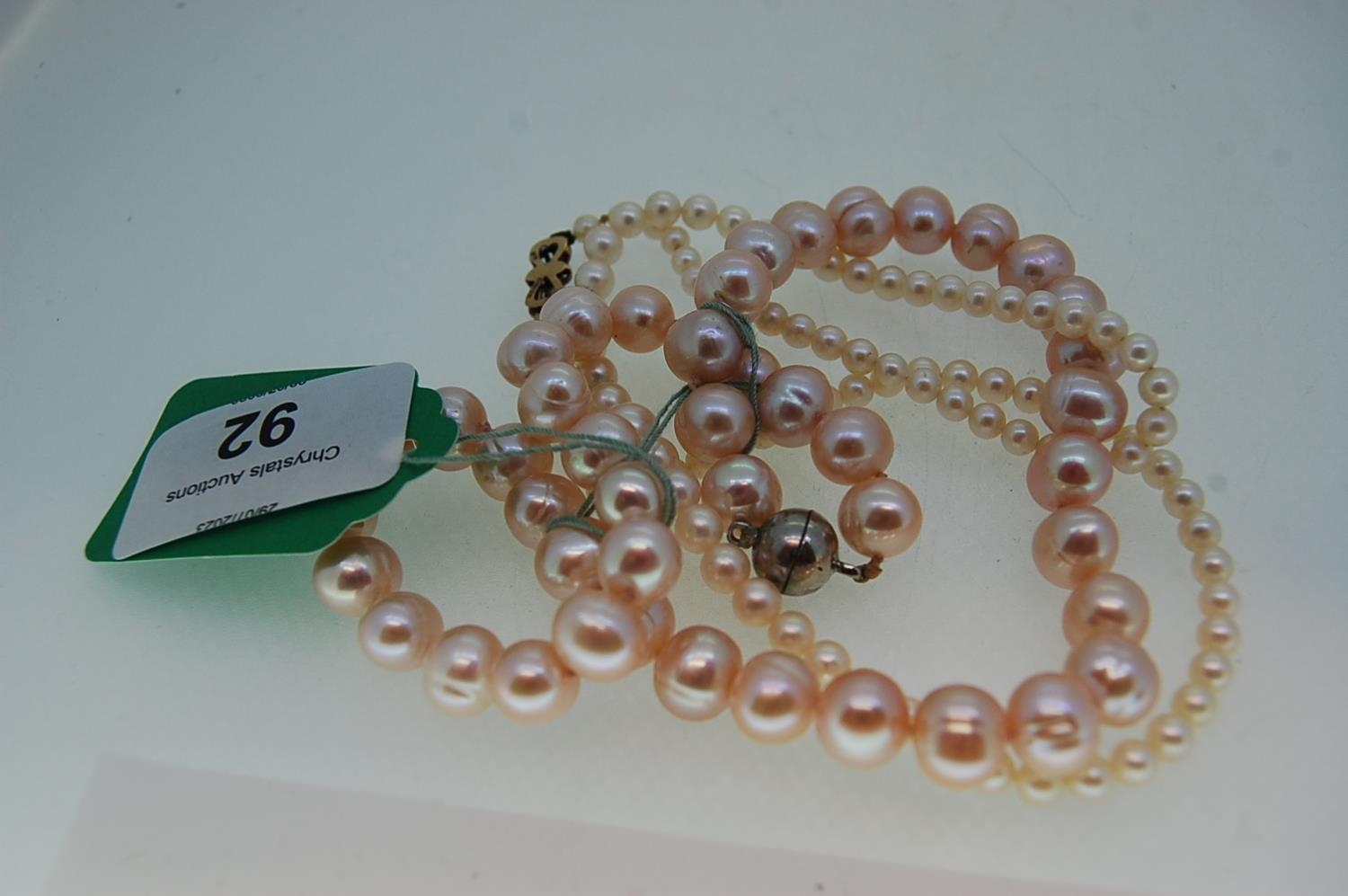 Two cultured pearl necklaces, one misshapen