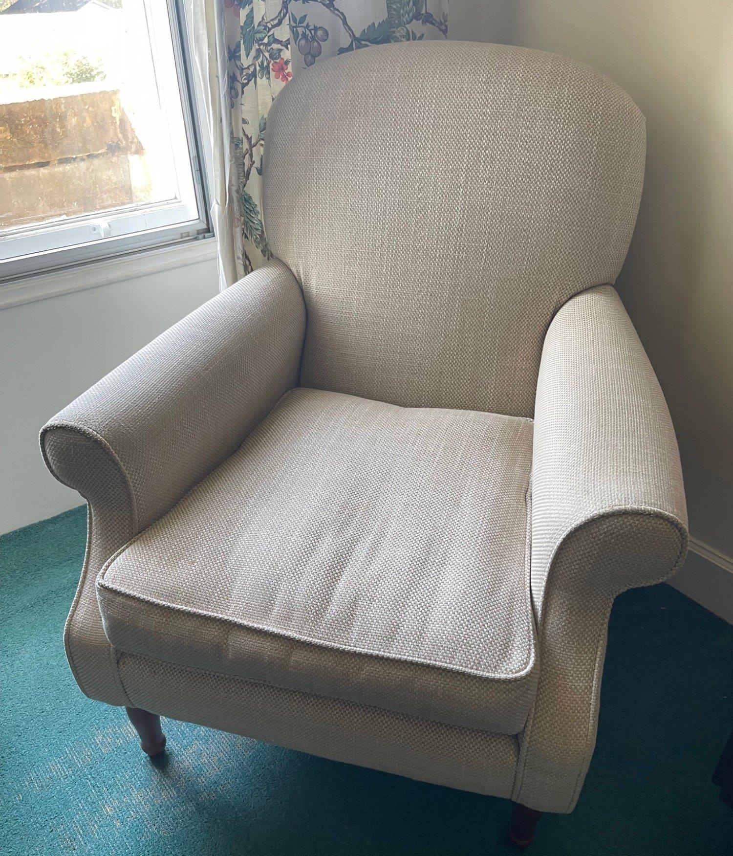A comfortable cream upholstered armchair