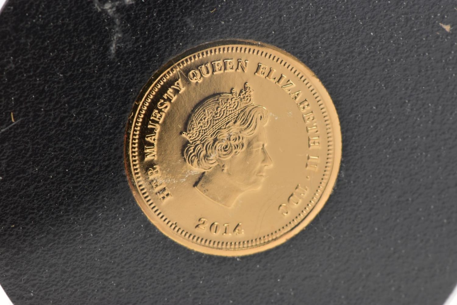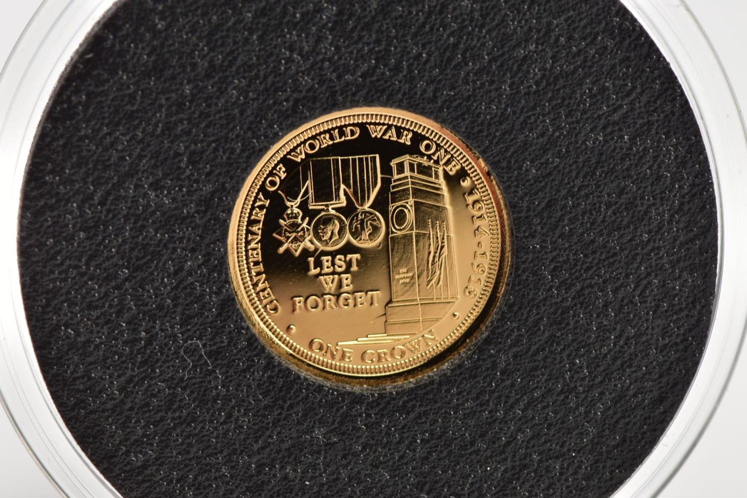 A 'CENTENARY OF WORLD WAR ONE 1914-1918 ONE CROWN' GOLD COIN, dated 2014, within a Proctective case