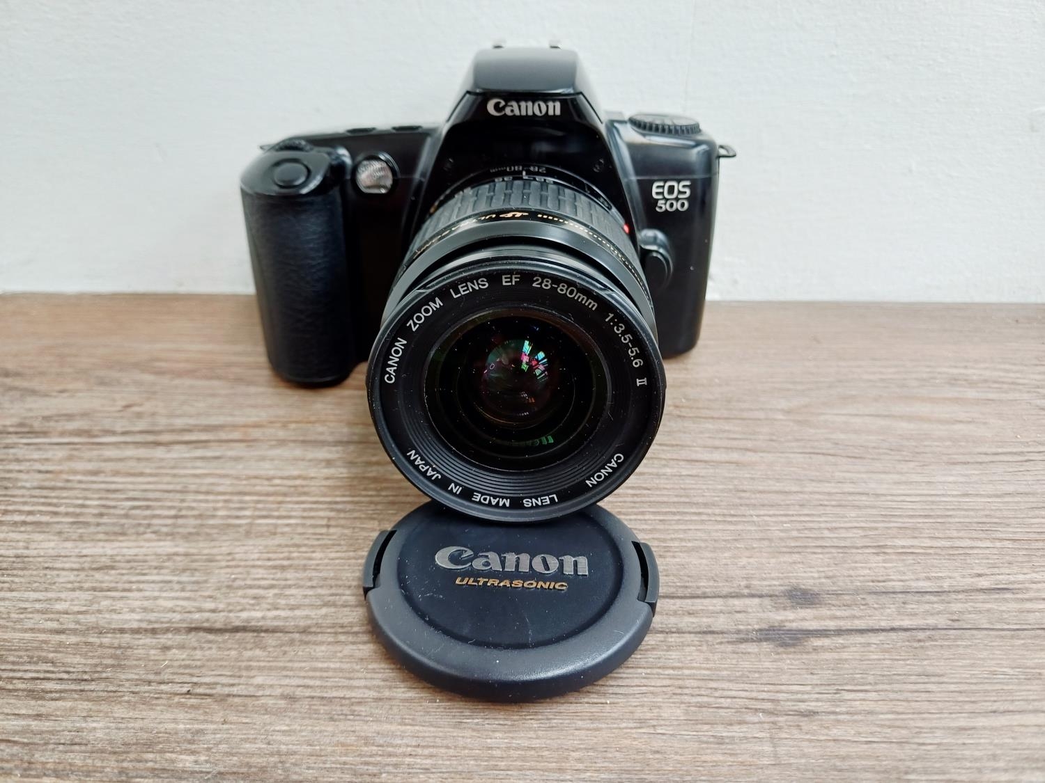 A Canon EOS 500 autofocus 35mm SLR camera fitted with EF 1:3.5-5.6 II 28-80mm lens