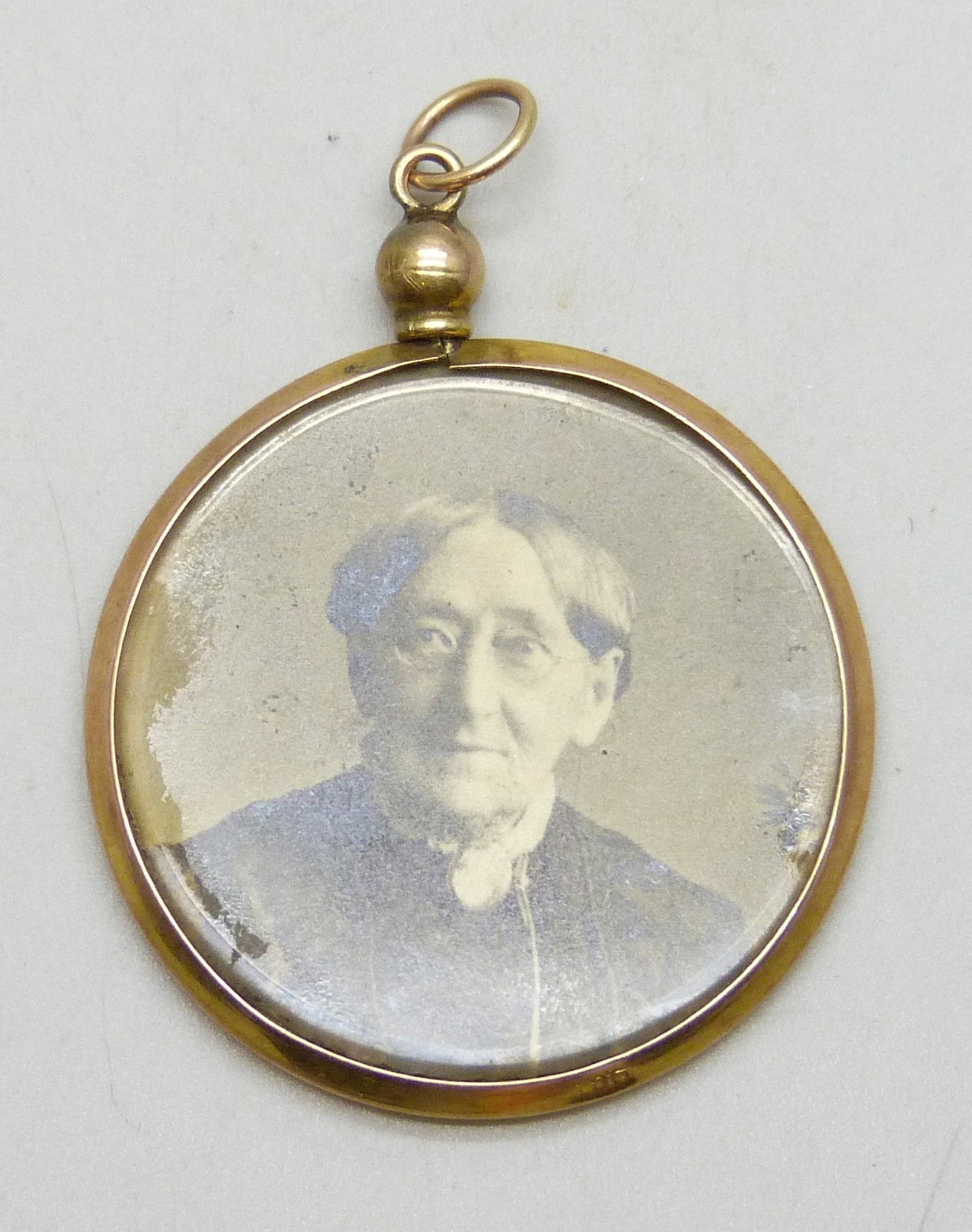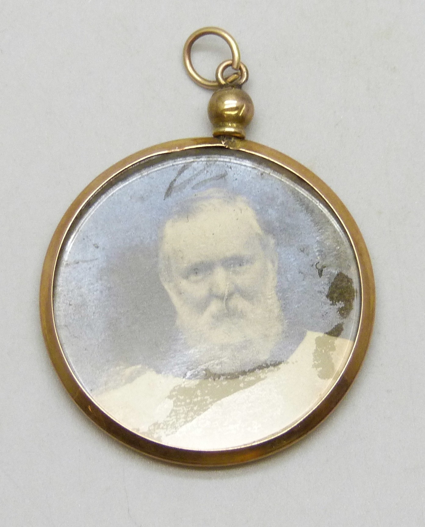 A 9ct gold framed photograph pendant, 6g, 4.6cm including bail