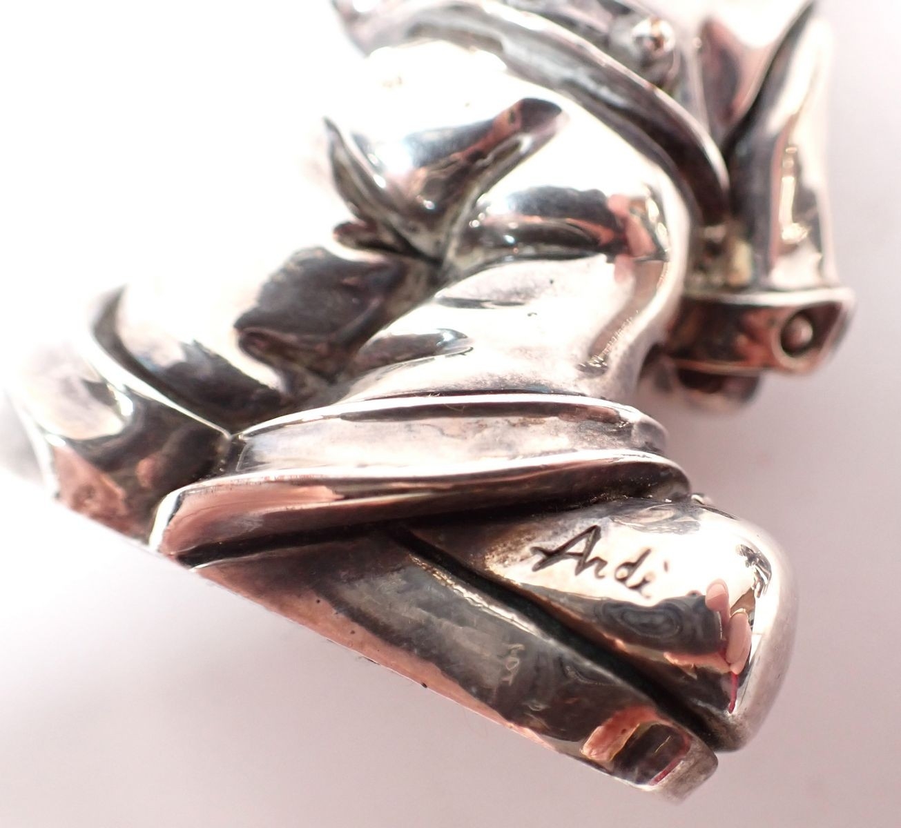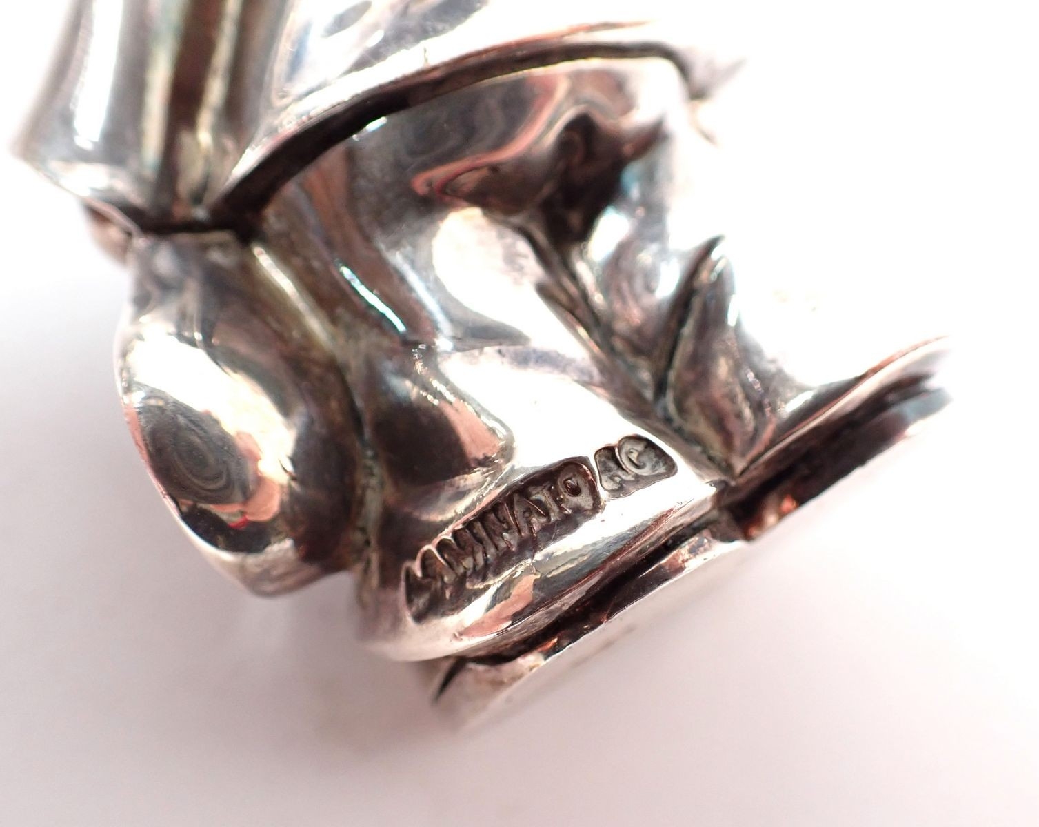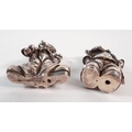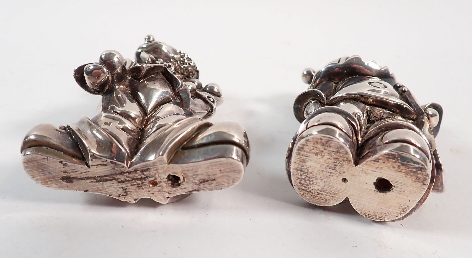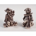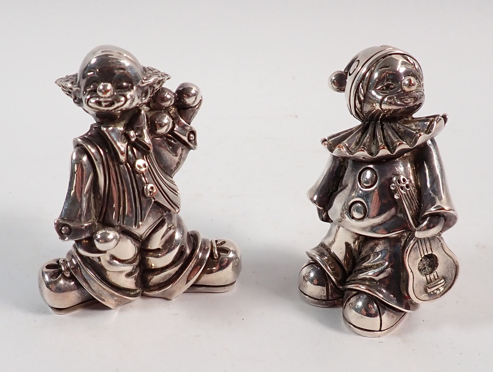 A pair of silver plated on copper clown figures marked Ardi, 7cm tall