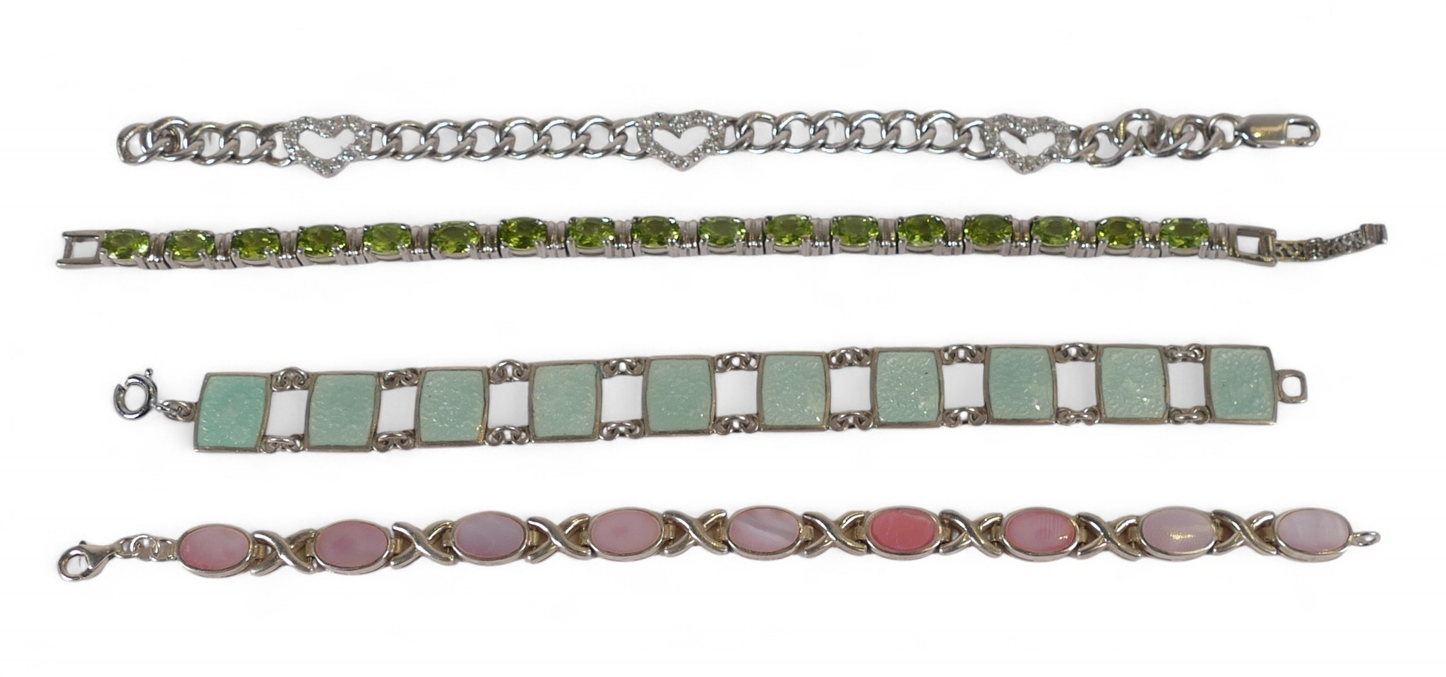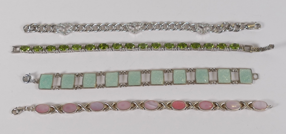 4 x sterling silver stone set bracelets, 64.6g