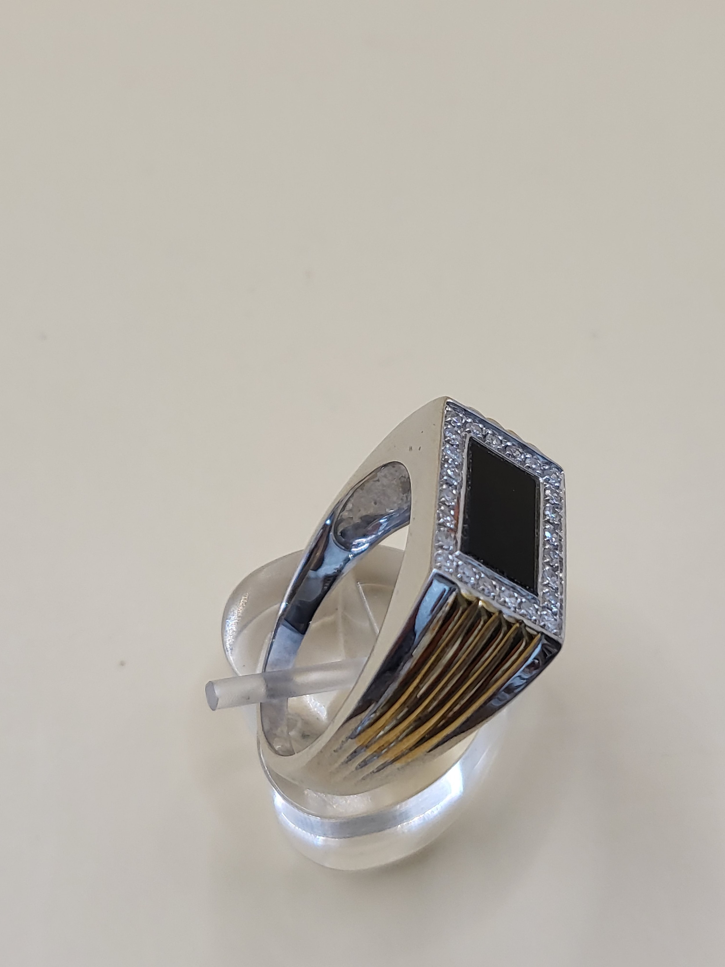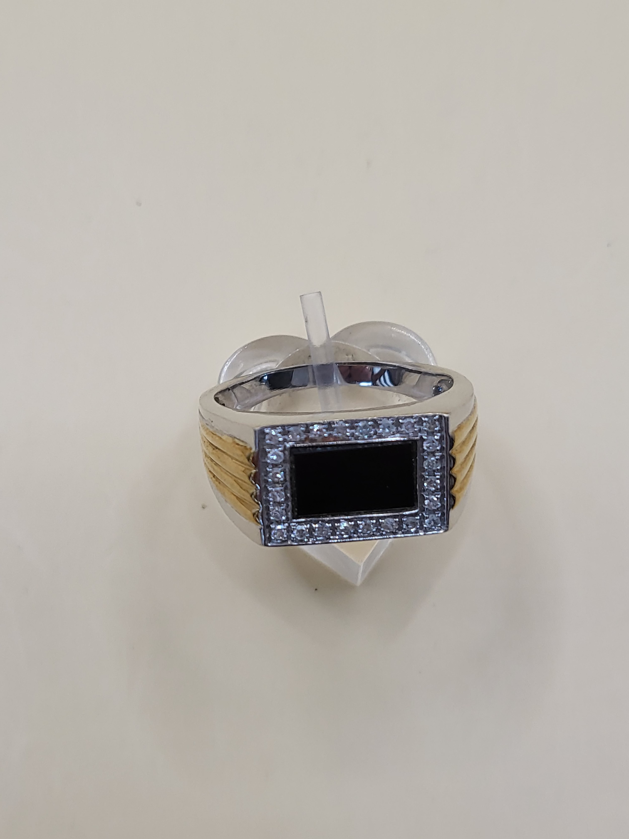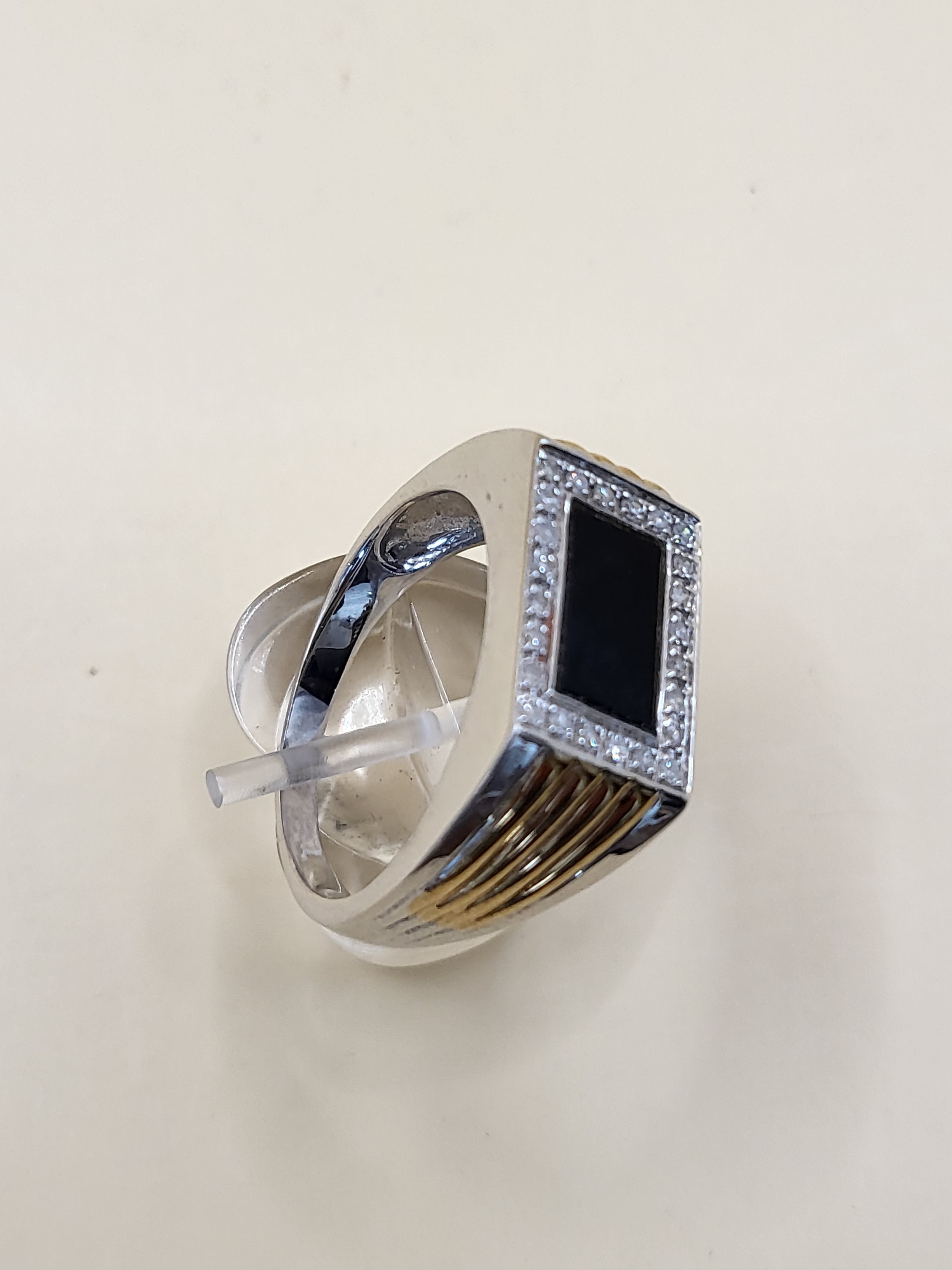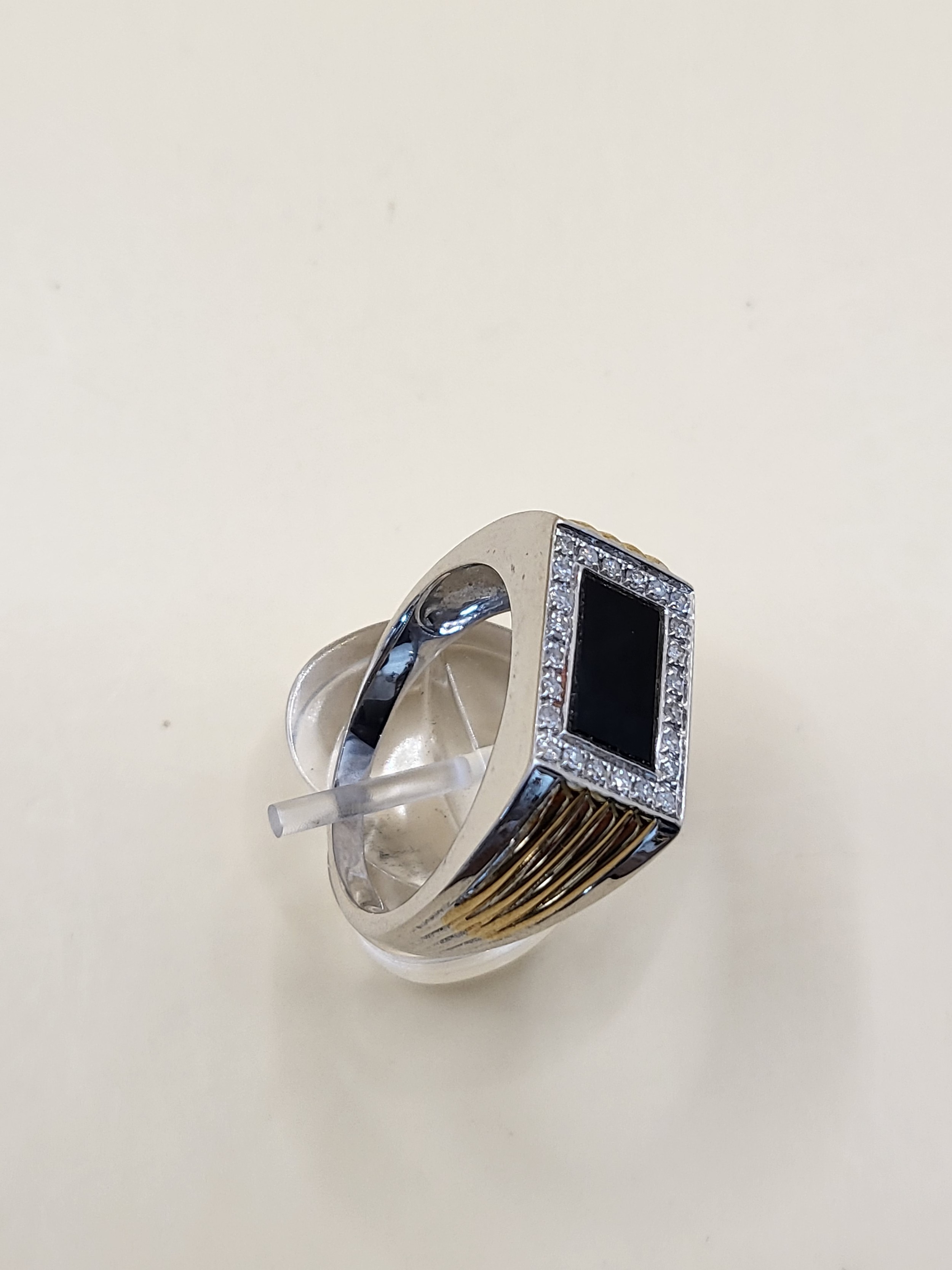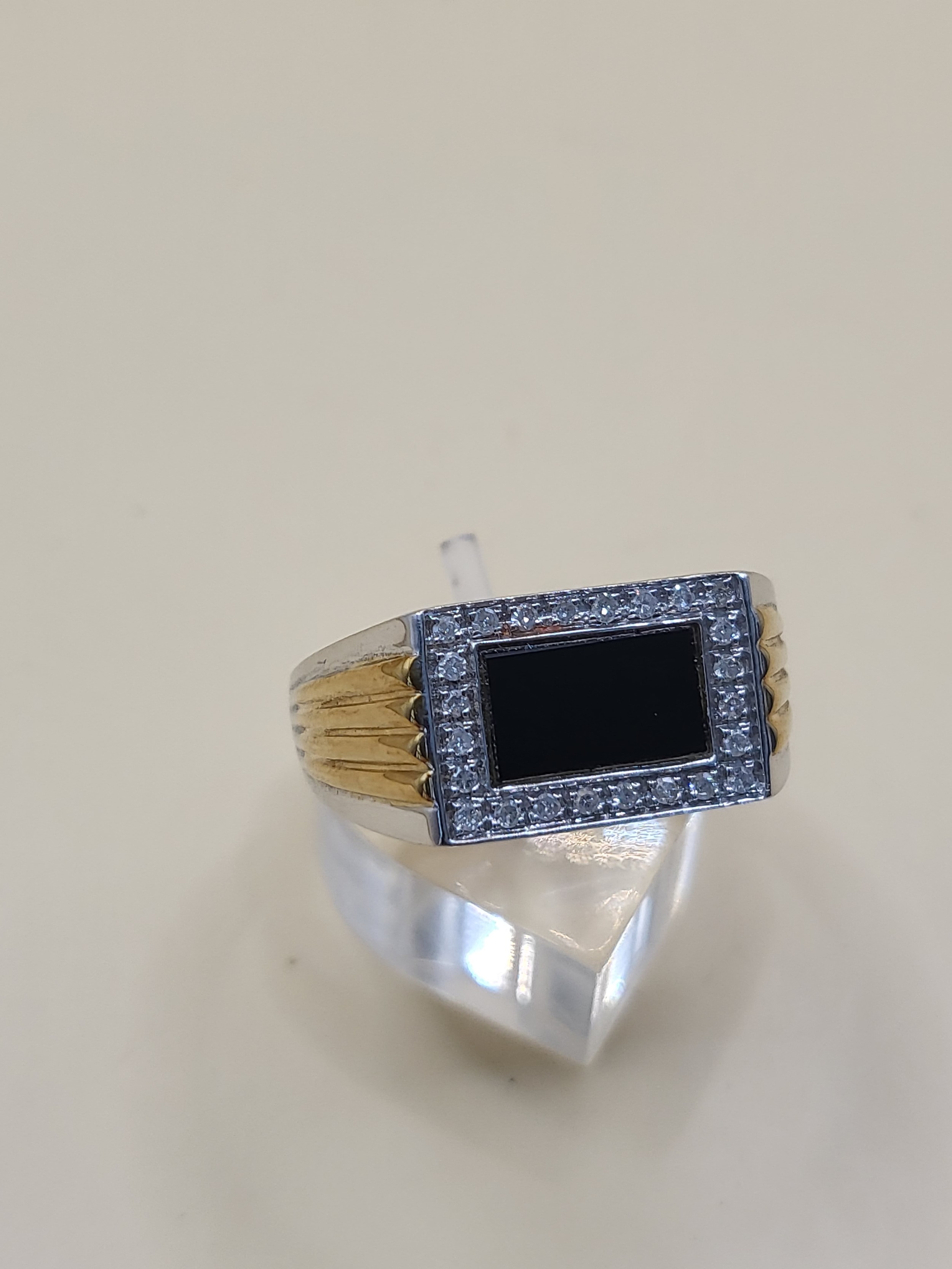 9ct Gold Gent's Ring with Diamonds & Large Square Onyx Stone Size X Weighs 6g Fully Hallmarked Good Condition