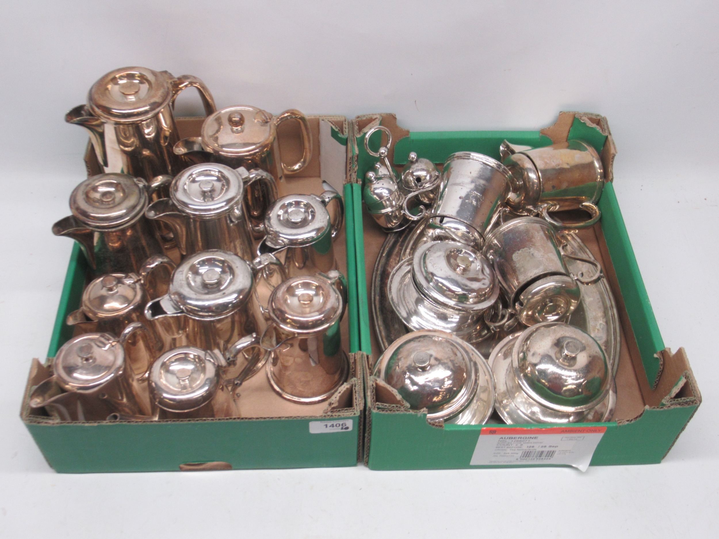 Harrison Bros. & Howson for South African Railways EPNS sugar basin, hinged lid and twin scroll handles; matched basin by Roberts & Belk Ltd and other EPNS tableware for South African Railways