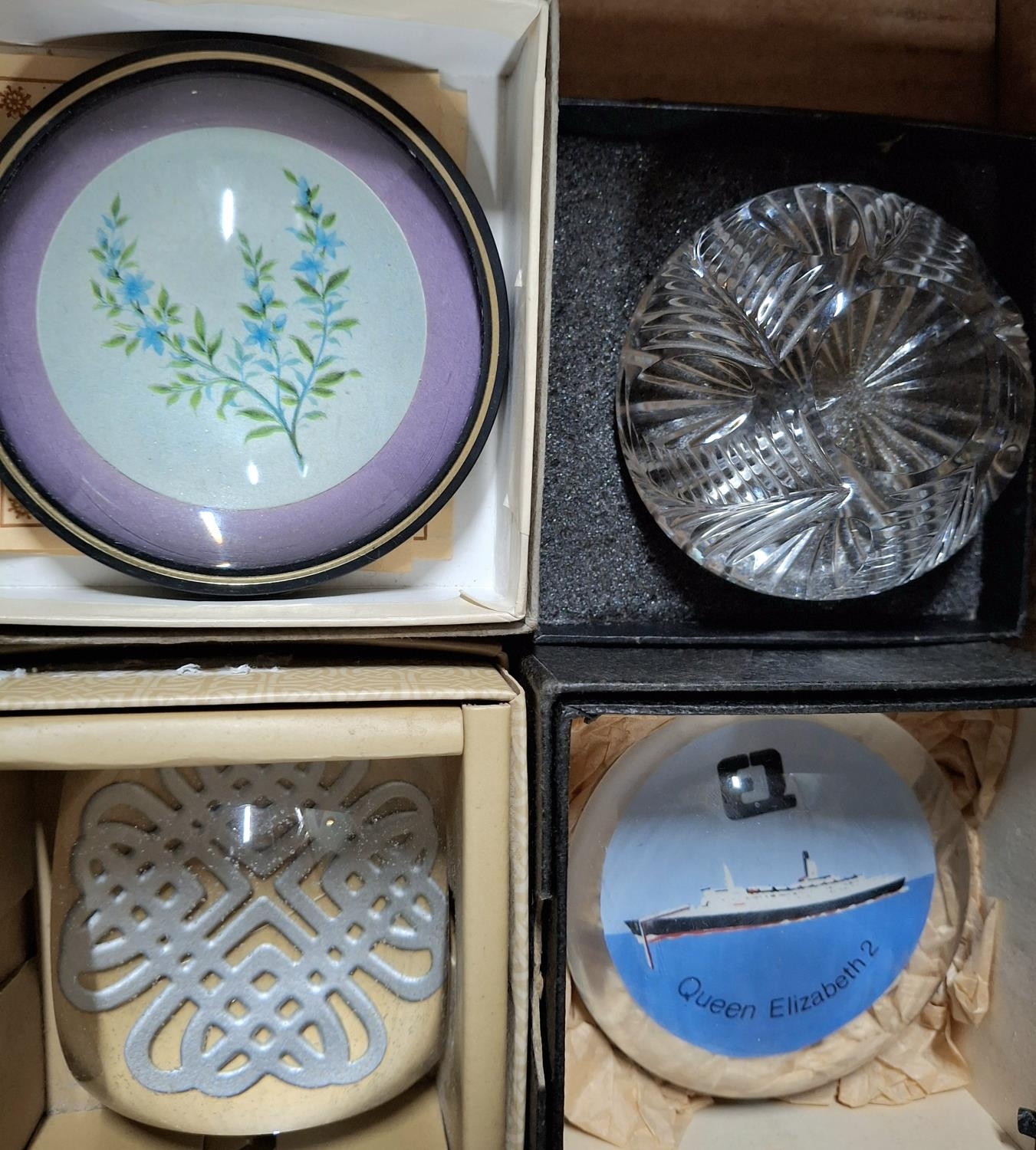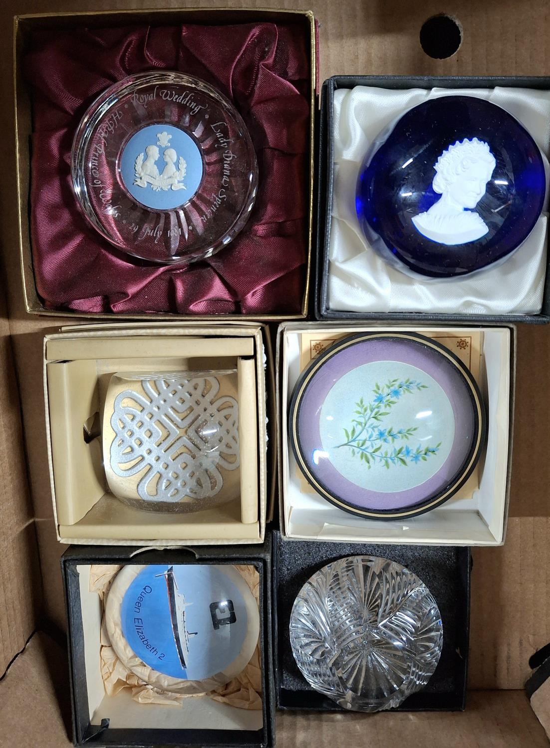 Six assorted, good quality paper weights, Edinburgh crystal, Selkirk glass, Wedgewood Cameo etc (6)