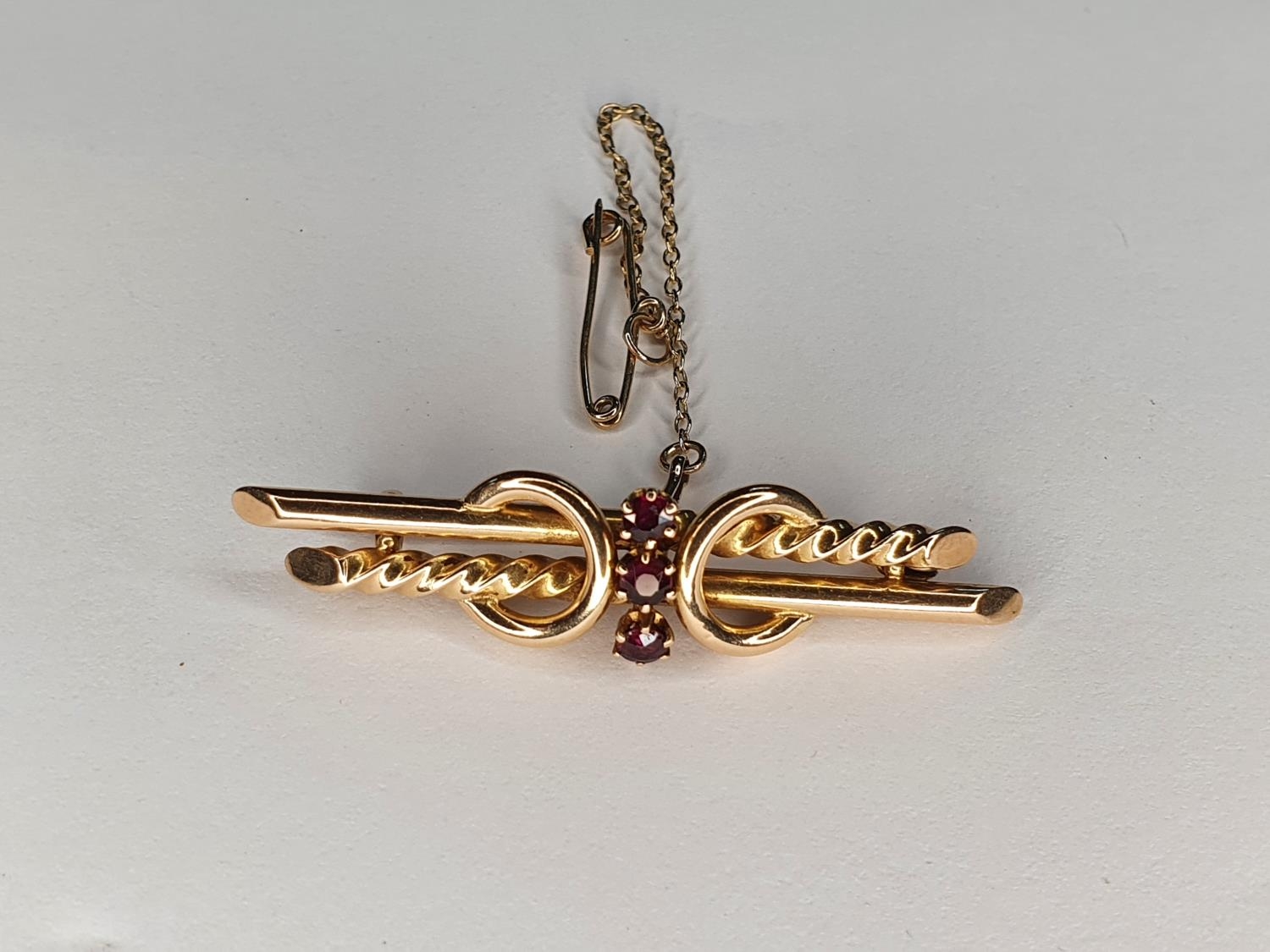Fine quality antique 15ct yellow gold and ruby brooch,