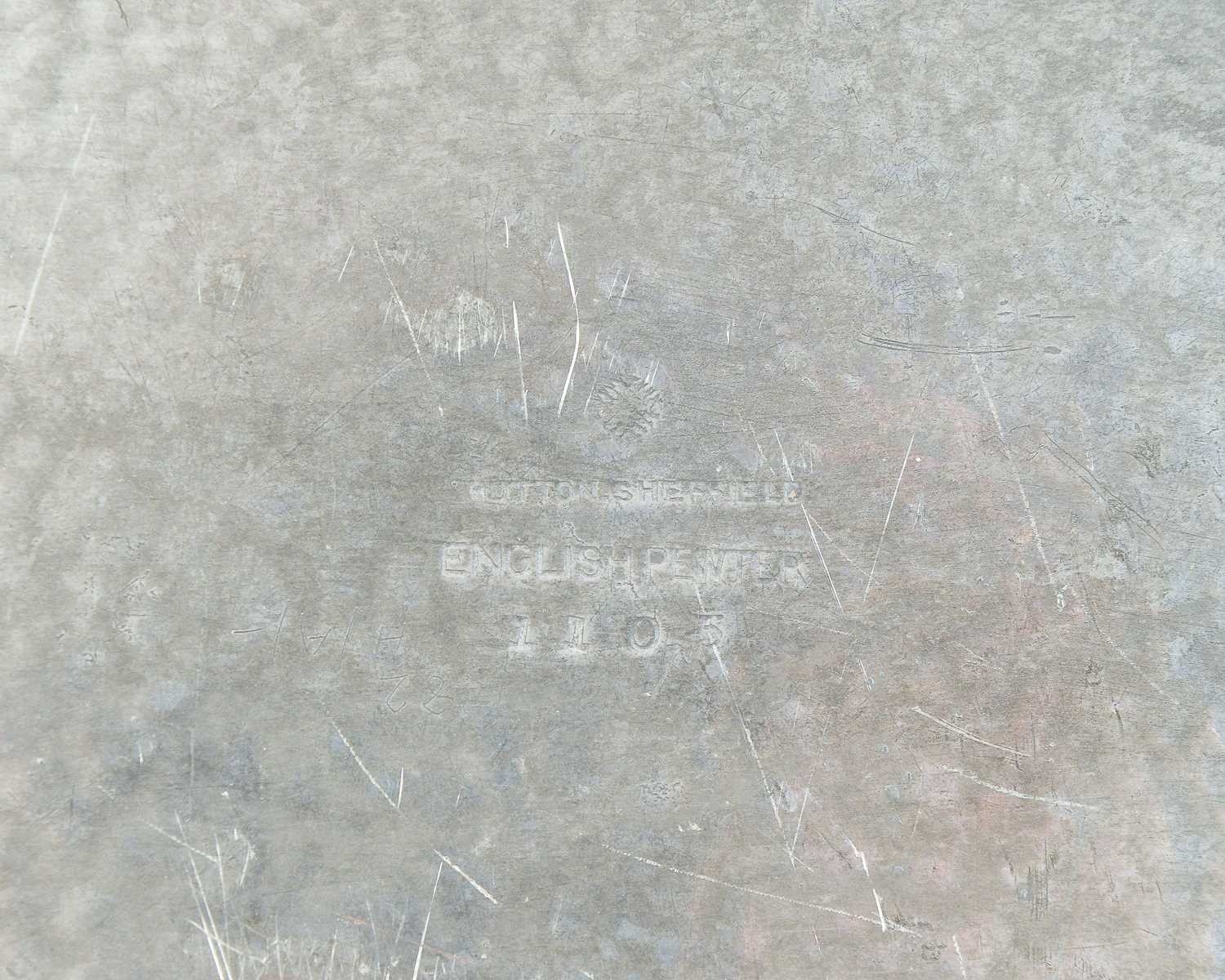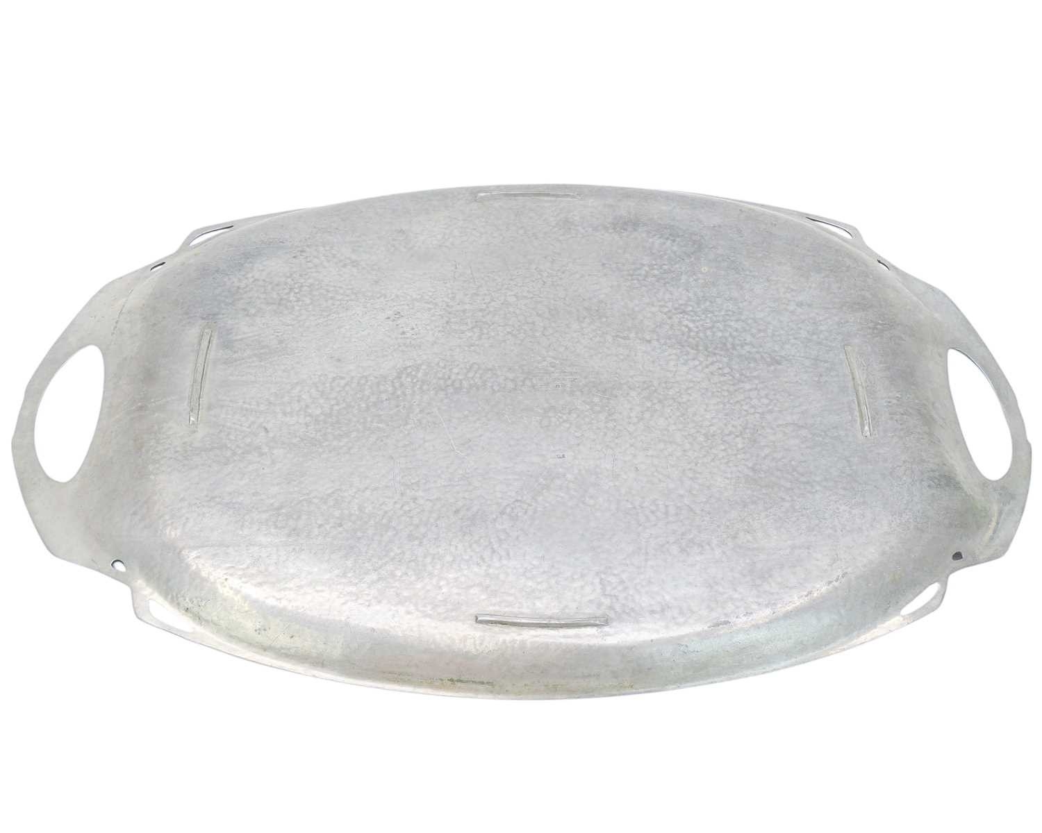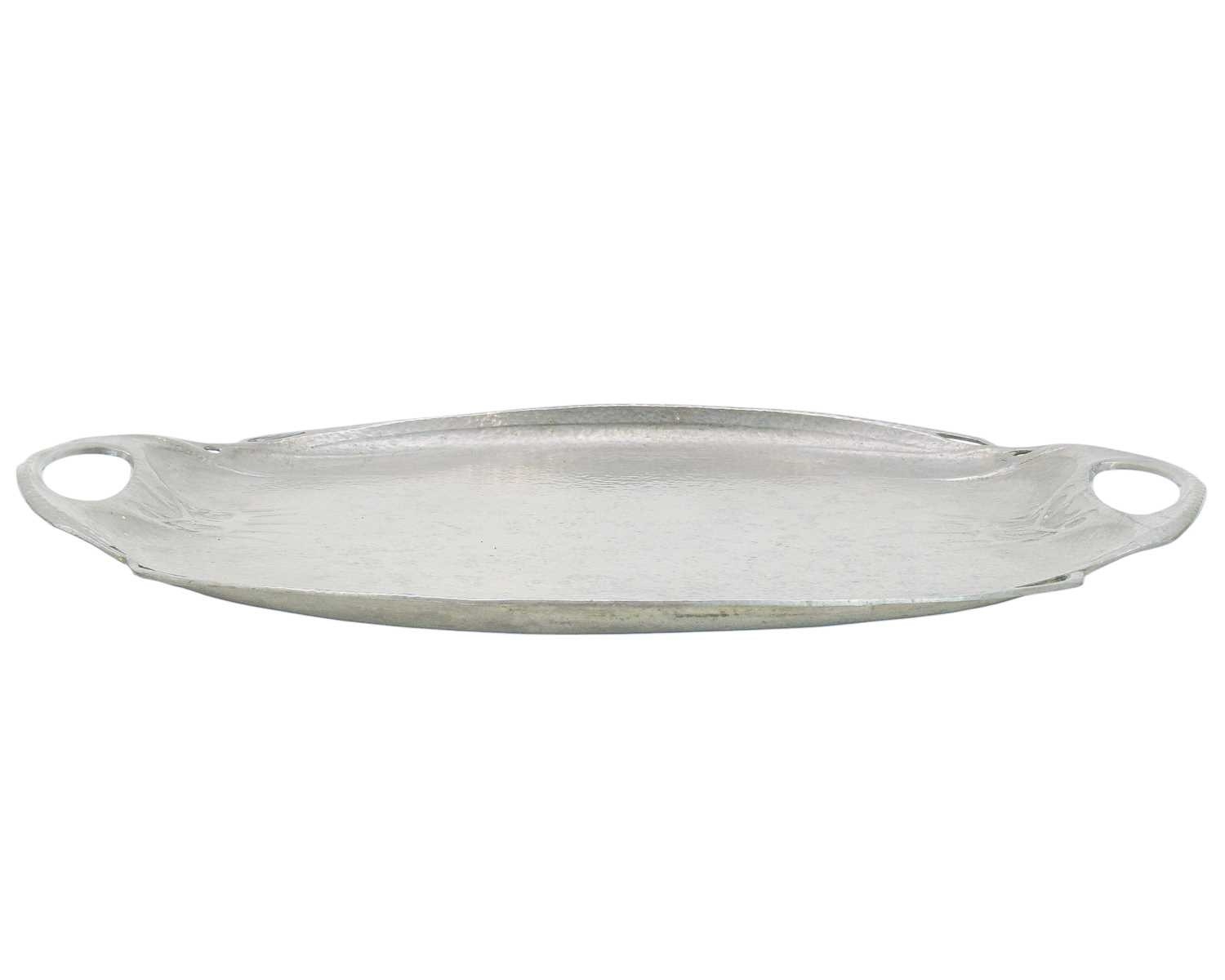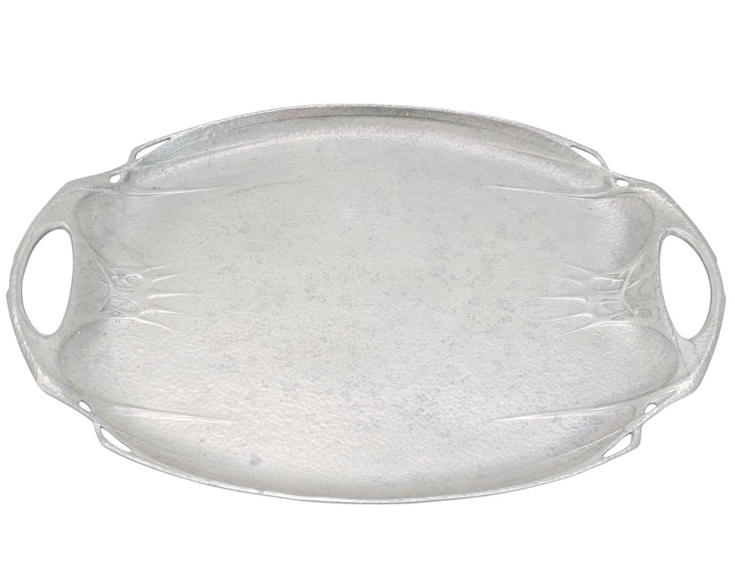 An Art Nouveau hammered pewter tray. By Hutton Sheffield in the Liberty style, length 48cm and width 31cm.