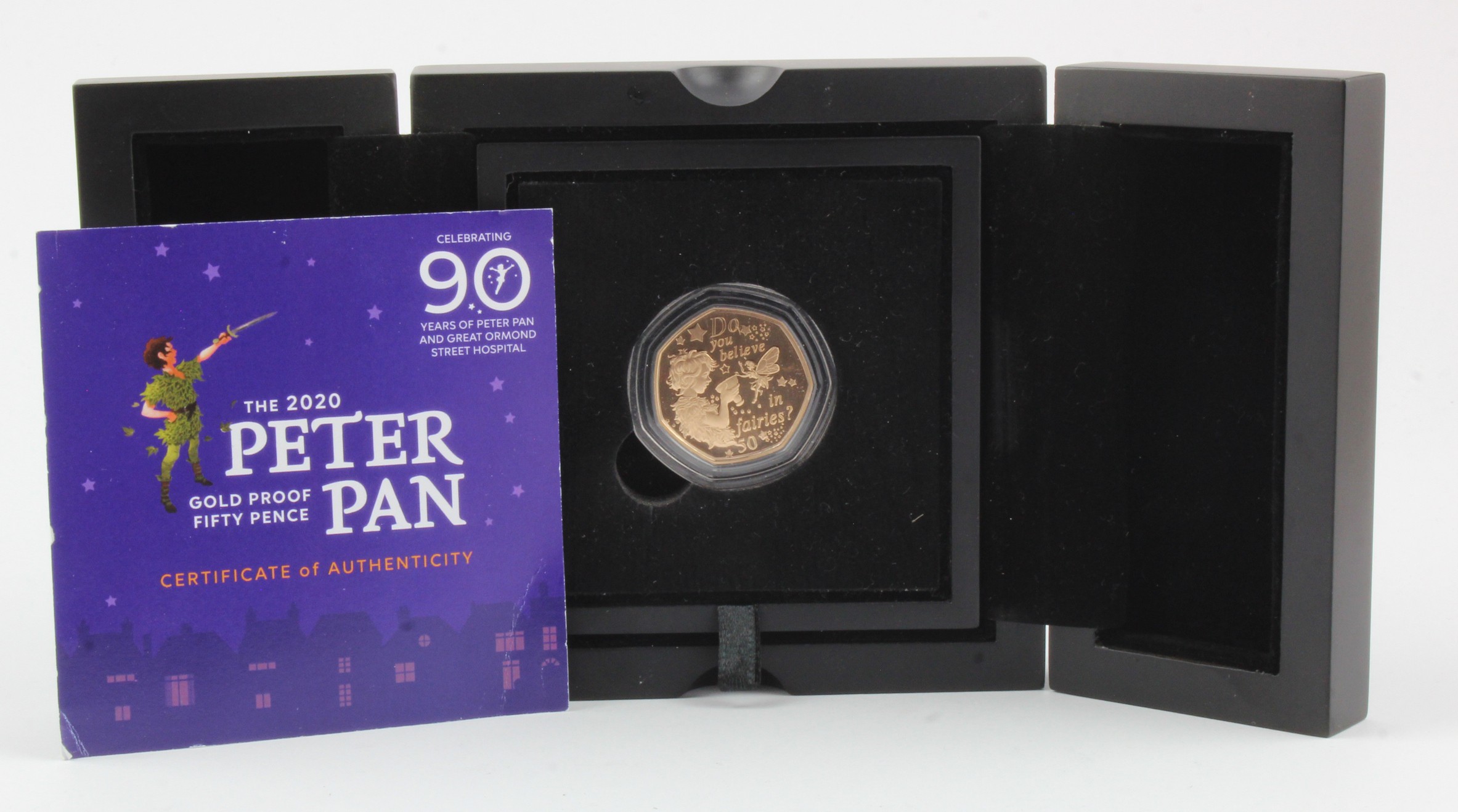 Isle of Man gold 50p 2020 "Peter Pan" FDC boxed as issued