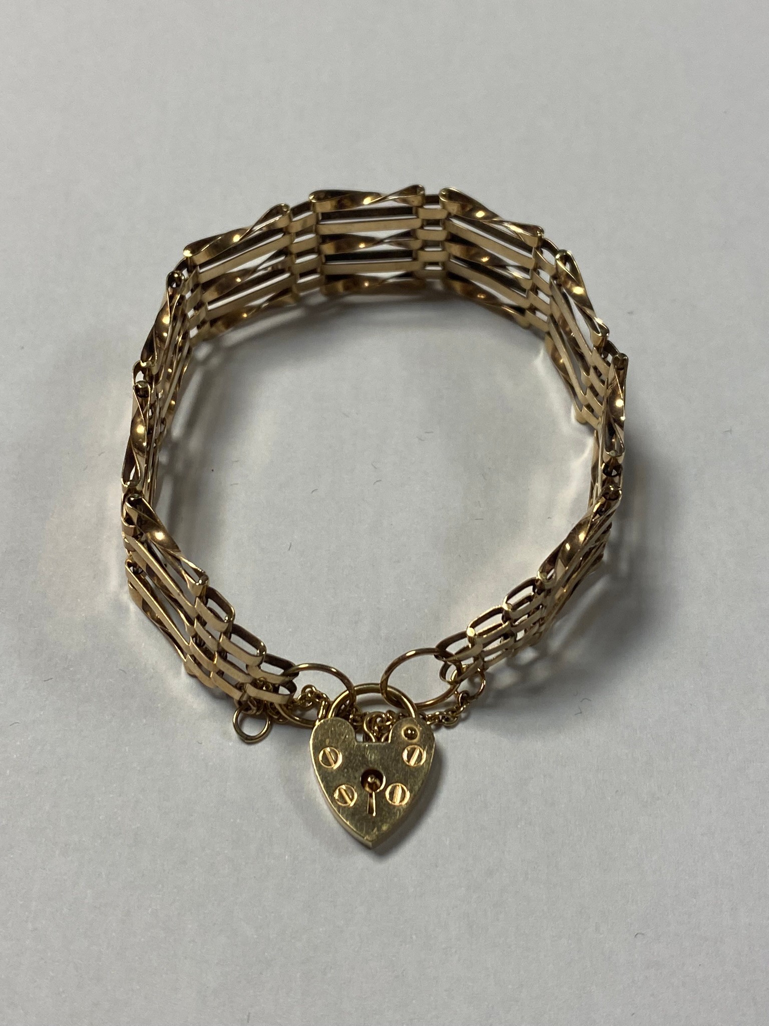 A 9ct gold gatelink bracelet, to heart shaped padlock clasp -